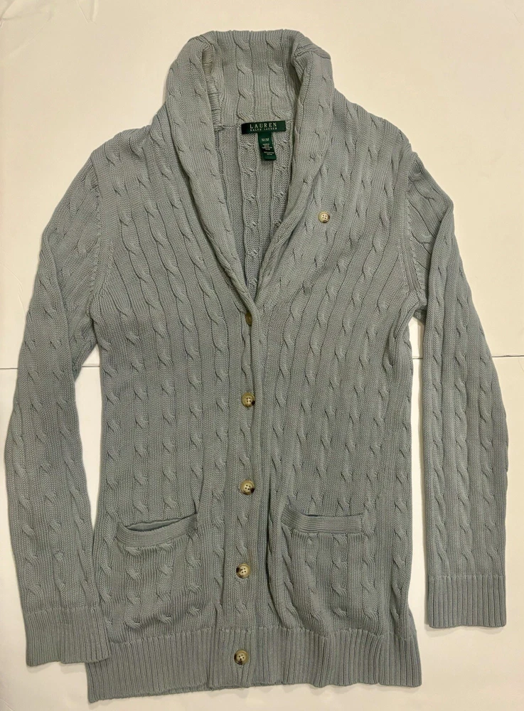 Lauren Ralph Lauren Cable Knit Cardigan Womens Size M. Condition is Pre-owned. Shipped with USPS Ground Advantage.