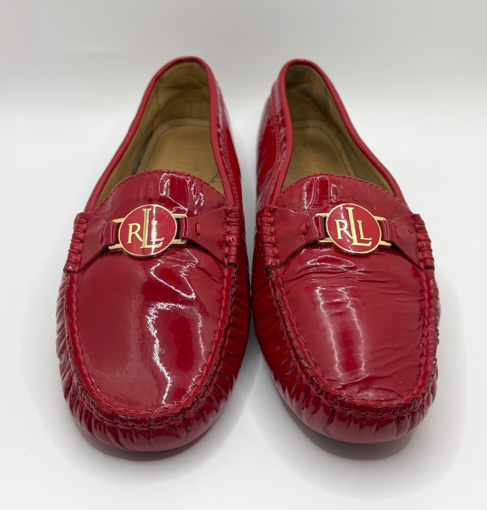 Lauren Ralph Lauren - Carley Woman’s Loafers Size: 6B Color: Red Material: Leather Shoes are in good pre-owned condition with some wear to the leather (the left shoe has more crinkling then the right one.)