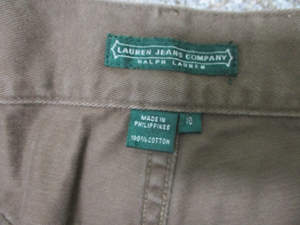 Brand: Lauren Ralph Lauren Material: Cotton, Cotton Blend Waist Size: 30 in Color: Brown Accents: Button, Logo Pocket Type: 5-Pocket Design Size: 10 Department: Women Theme: American, Logo, Modern Country/Region of Manufacture: China Rise: Mid (8.5-10.5 in) Pattern: Solid Style: Capri Size Type: Regular Type: Jeans Suspender Buttons/Belt Loops: Belt Loops Inseam: 22 in Fabric Type: Canvas gtin13: Does Not Apply Seller Notes: “Very Good Used Condition. Please, See Pictures for Full Condition and Measurements.” Season: Fall, Spring, Summer, Winter Fit: Regular UPC: Does Not Apply Features: Comfort, Easy Care, Pockets, Stretch Closure: Zip Garment Care: Machine Washable