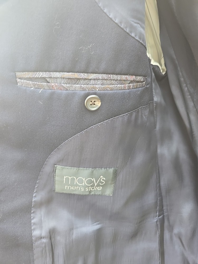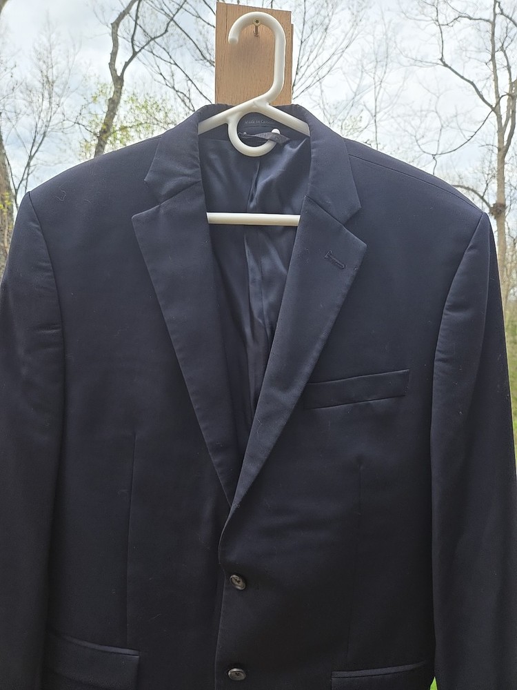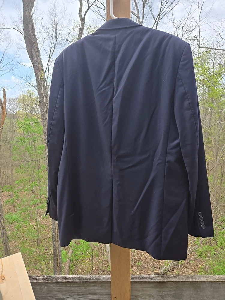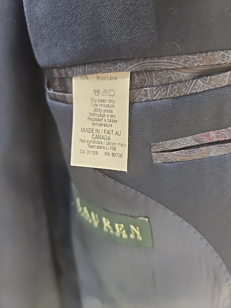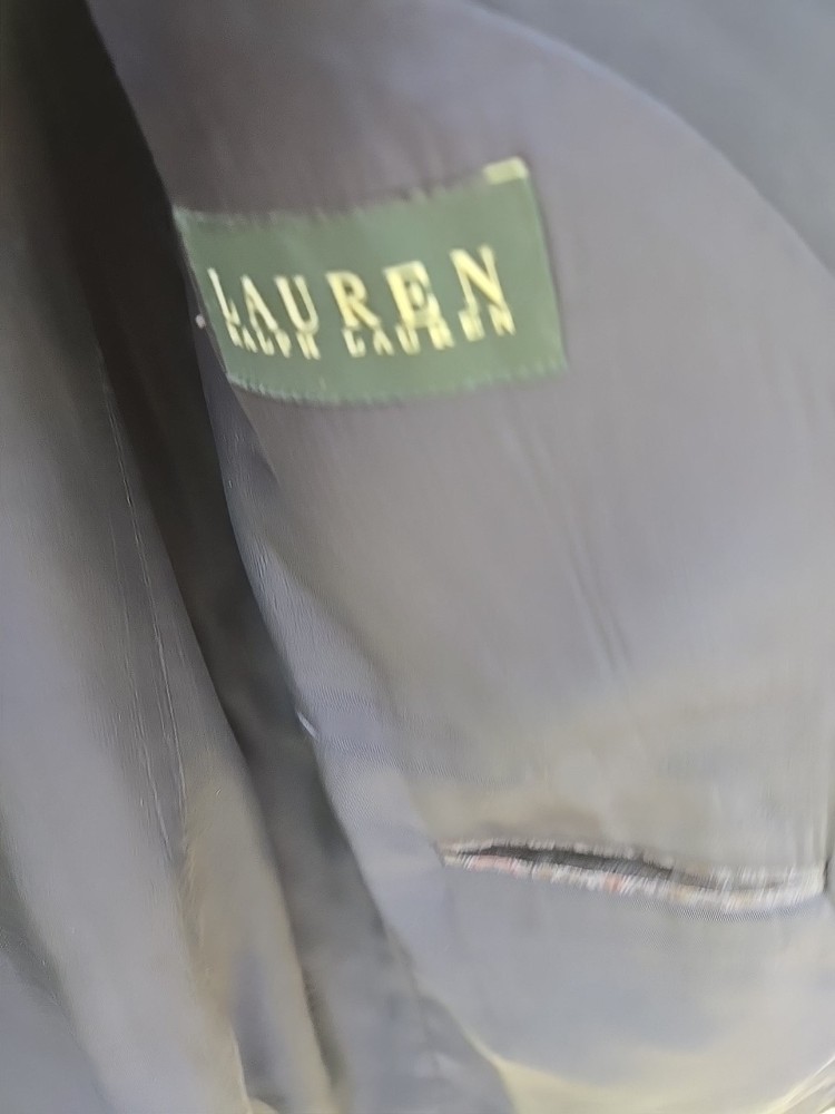 Brand: Lauren Style: Coat Only Size: 44 Theme: Sports Color: Blue Garment Care: Dry Clean Only Department: Men Pattern: Solid Jacket Sleeve Button Style: Four-Button Features: Inner Pockets Type: Sport Coat Size Type: Big & Tall Material: Wool