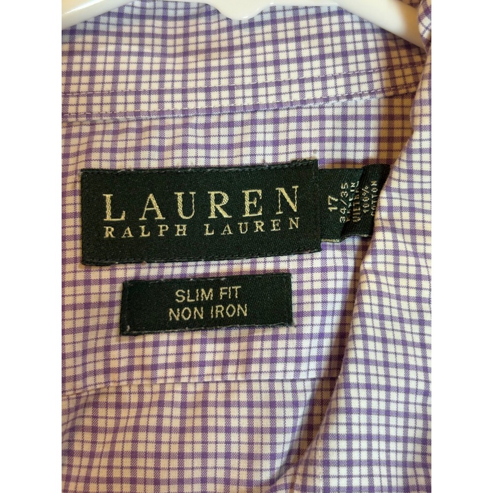 A sharp button-down shirt from Lauren Ralph Lauren in a classic check pattern. This non-iron dress shirt offers a slim fit for a modern silhouette, perfect for business or casual wear. Its versatile design makes it suitable for a day at the office, a weekend brunch, or an evening out. Measurements: • Collar: 17 in • Sleeve Length: 34-35 in Department: Men Neck Size: 17 in Fit: Slim Sleeve Length: Long Sleeve Pattern: Check Type: Dress Shirt Collar Style: Point Material: 100% Cotton Top Cuff Style: Barrel Cuff Theme: Classic, Designer, Computer & Office Features: Non-Iron, Slimming Neckline: Collared Keywords: Lauren Ralph Lauren, Mens Dress Shirt, Slim Fit, Non Iron, Button Down, Check Pattern, Purple Shirt, Blue Shirt, Mens Fashion, Work Shirt, Casual Shirt, Business Casual, Long Sleeve, Cotton Shirt, Ralph Lauren