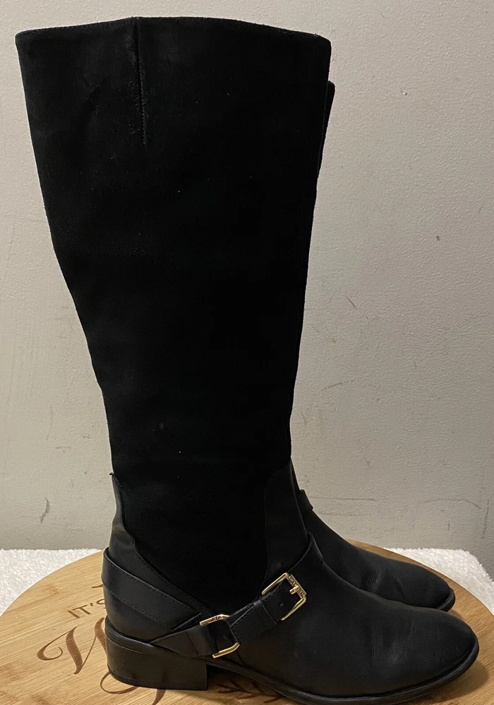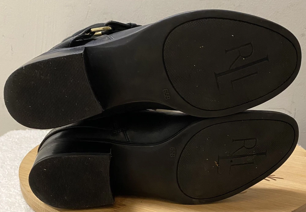 Character: Boots Pattern: Solid AU Shoe Size: N/A Calf Width: Medium Type: Boot Product Line: N/A Brand: Lauren Ralph Lauren Lining Material: Leather Theme: Cowgirl Platform Height: 1.5 in Customized: No UK Shoe Size: N/A Toe Shape: Almond Toe UPC: N/A Style: riding Outsole Material: Leather Features: Comfort Vintage: No Department: Women Model: Lauren Ralph Lauren Mila US Shoe Size: 6.5 Country/Region of Manufacture: China Heel Height: Low (1-1.9 in) Insole Material: Leather Shoe Shaft Style: Knee High Closure: Zip EU Shoe Size: N/A Upper Material: Leather Shoe Width: Standard Heel Style: Block Fabric Type: N/A gtin13: N/A Color: Black Season: Winter, Fall Seller Notes: “Like new” Accents: Zipper, Ankle Strap Occasion: Casual