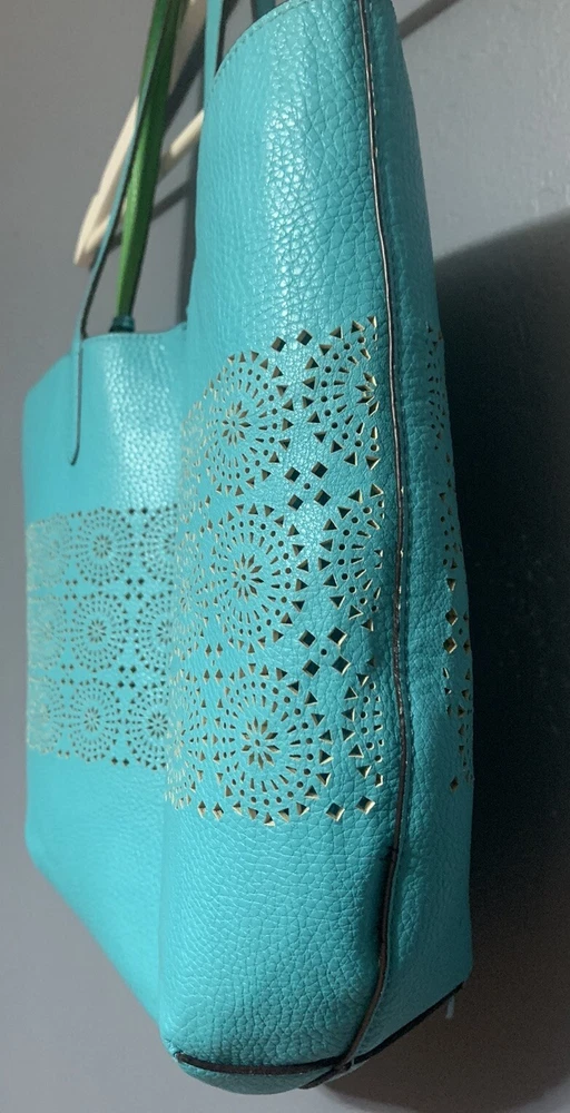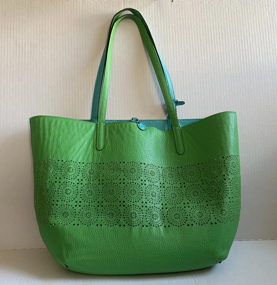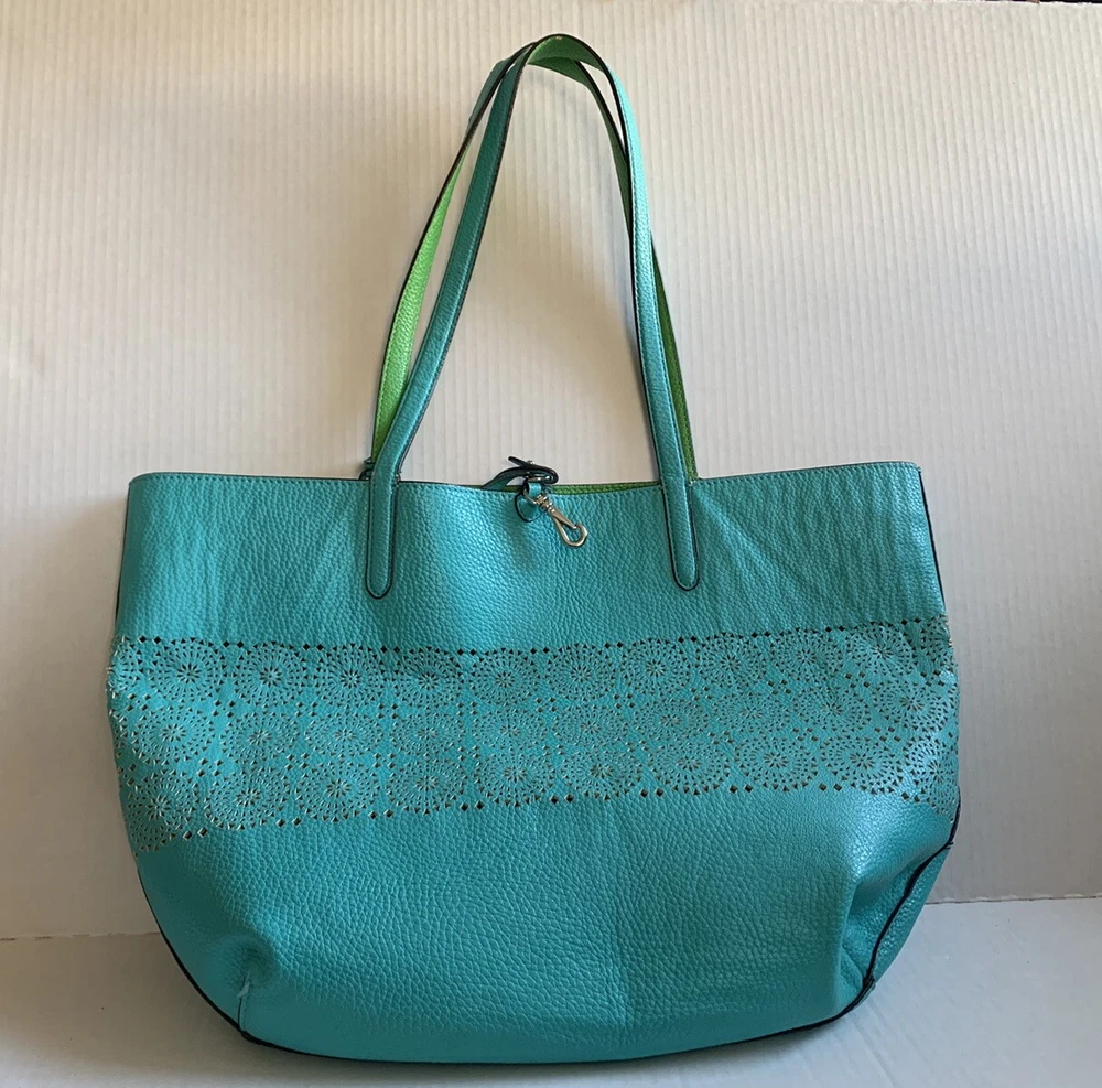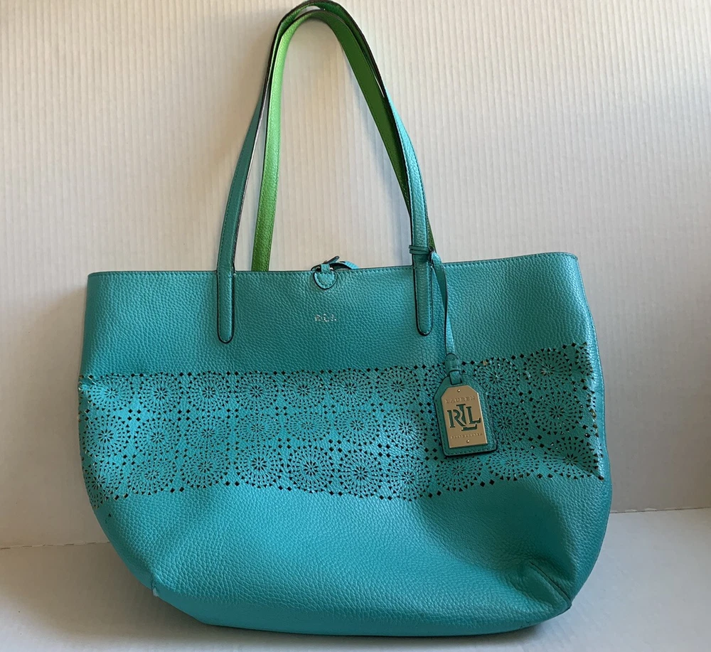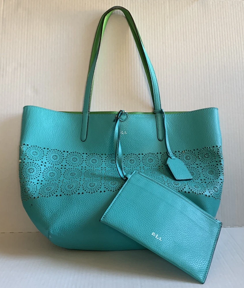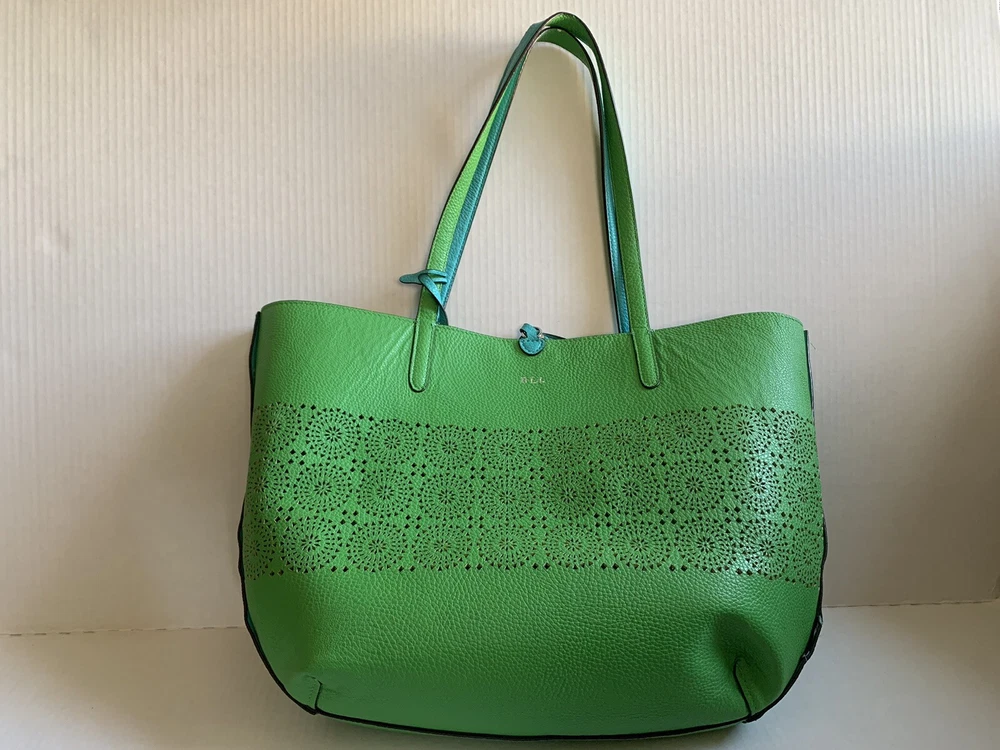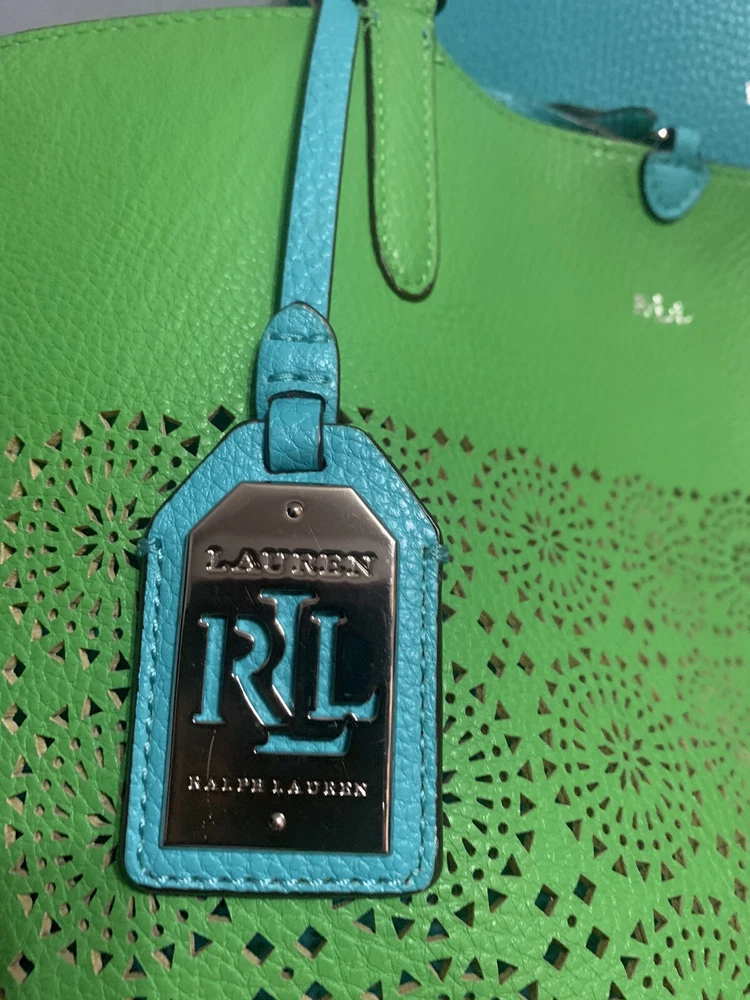 Lauren Ralph Lauren Reversible Tote in Tiffany Blue & Lime Green bag with pouch. A beautiful bag for a casual day out, fits everything. Measurement: Width 17”, height 12”, depth 4”, handle drop 10” Shipped promptly. Packed carefully. Smoke free. Please manage your expectations when buying preloved items. Please note that the items represented for resale are in excellent used or good used AS IS condition if not NEW WITH TAGS. Please see all pictures and item description before buying. We are happy to answer any of your questions to the best of our ability. Return item must include all original items undamaged, unused, in re-saleable condition, with all original packaging, etc. We will not offer a full refund if it has been altered/used in any way.
