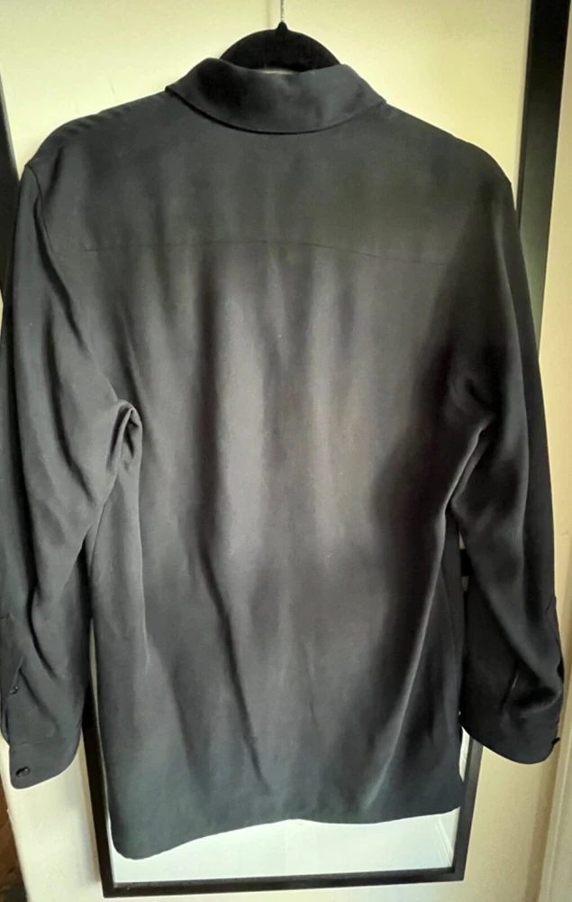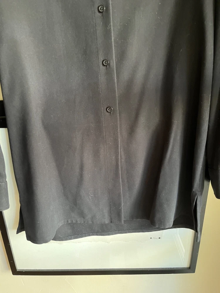 Lauren Ralph Lauren S black heavy silk button front blouse/tunic 2 way sleeves
