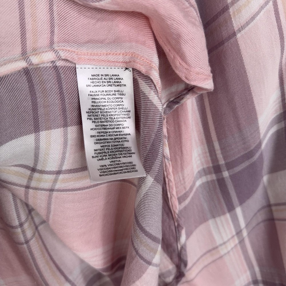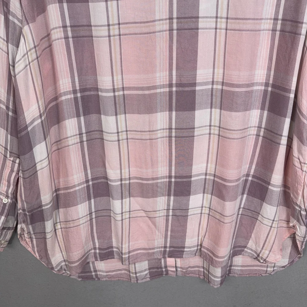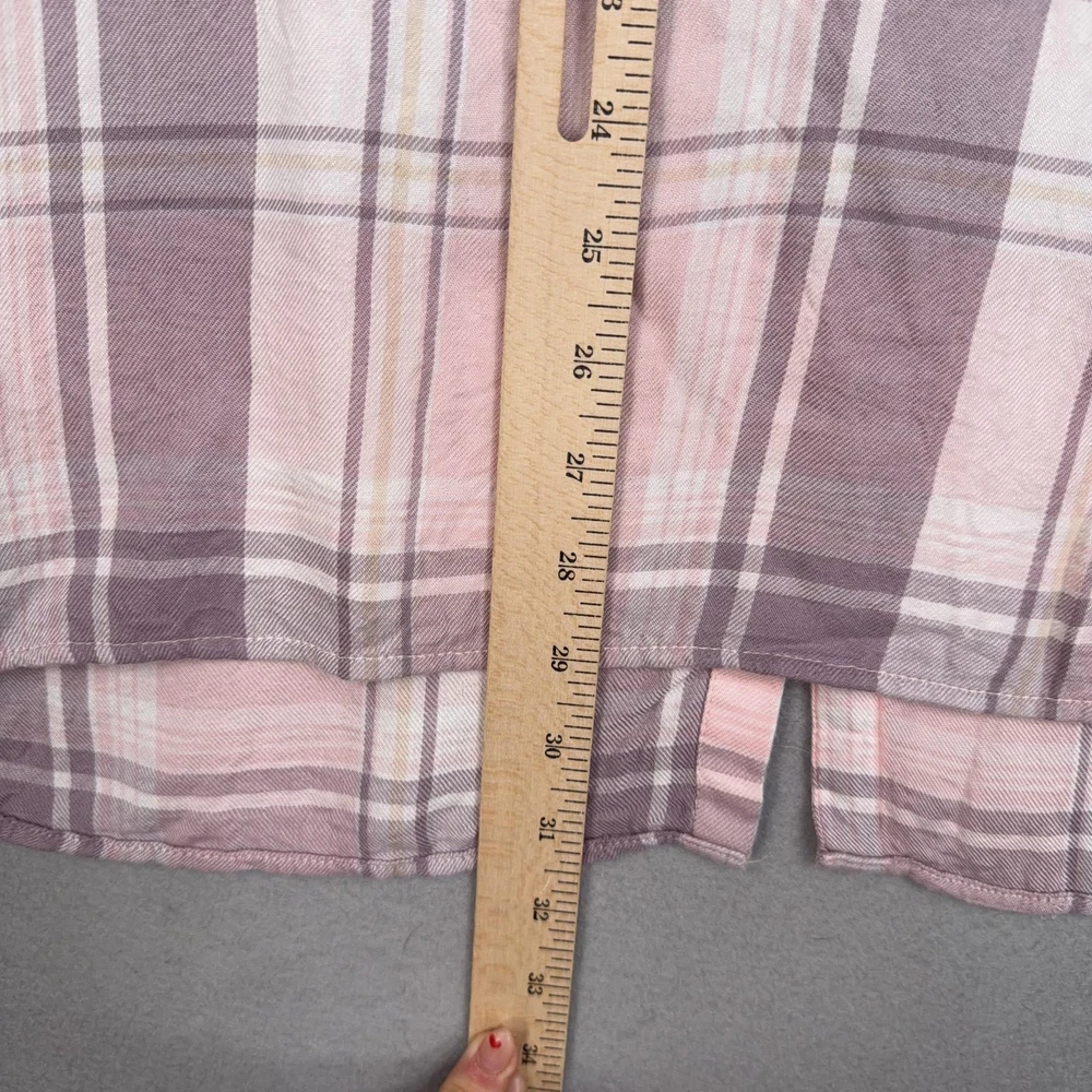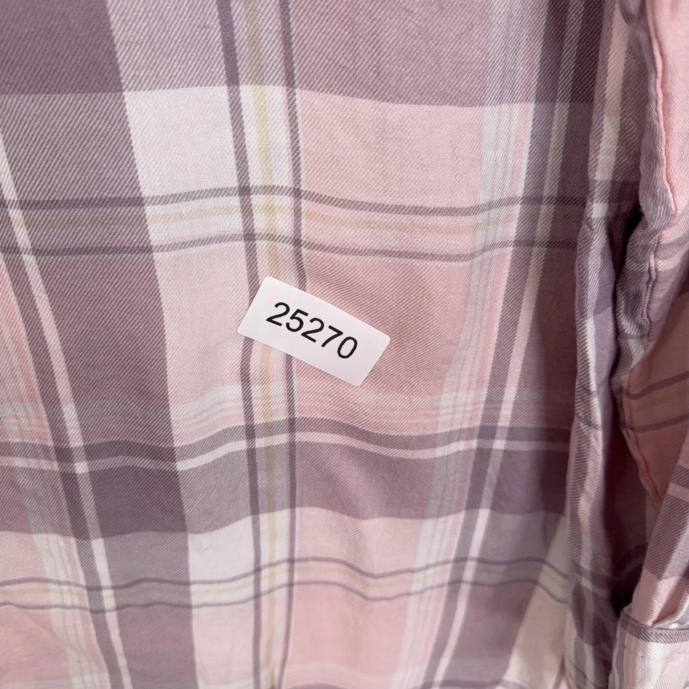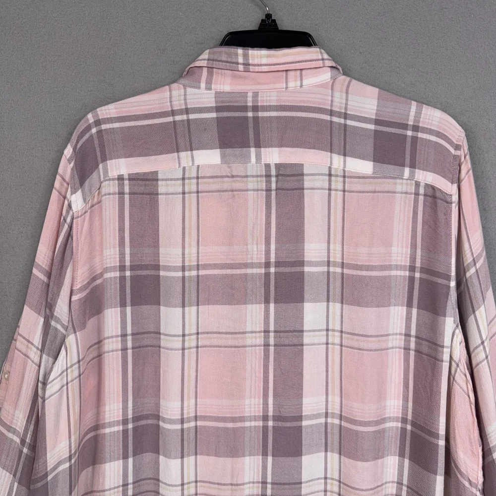 Lauren Ralph Lauren Button Up Shirt Womens 2X Pink Plaid Tunic Viscose Top Pre-owned shirt with light overall wear from previous use and laundering. Viscose fabric, seams, and collar are clean and intact with no holes or stains, and all buttons are secure and functional. Fabric shows light wrinkles from normal storage and handling. Brand: Lauren Ralph Lauren. Style: Womens long sleeve button-up tunic shirt with a relaxed, easy fit and roll-tab sleeves. Color: Soft pink and mauve plaid pattern with white and taupe accents. Size on tag: Womens 2X. Material: 100% viscose woven fabric with a lightweight, soft flannel feel. Features: Collared neckline, full front button closure, long sleeves with button roll tabs, back yoke detail, curved high-low shirttail hem, and small side slits at the hem. Care: Refer to the interior care label for complete washing and drying instructions. Tag details: Inner neck label reads LAUREN RALPH LAUREN with size 2X/TTG, and interior side label lists 100% viscose, made in Sri Lanka, and multilingual fabric content and care information. Additional info: Casual plaid tunic shirt ideal for everyday wear and layering with jeans, leggings, or shorts; review all photos for views of the front, back, sleeves, and hem details. 25270 Measurements: Previous washings may change sizing on the tag. Refer to photos above for all measurements. Compare our measurements to one of your favorite garments. Measurements are approximate. All items are bagged and sealed after being photographed, then stored in a smoke free environment. Washed per eBay standards. I carefully package and ship daily. Contact me with any questions. Thanks