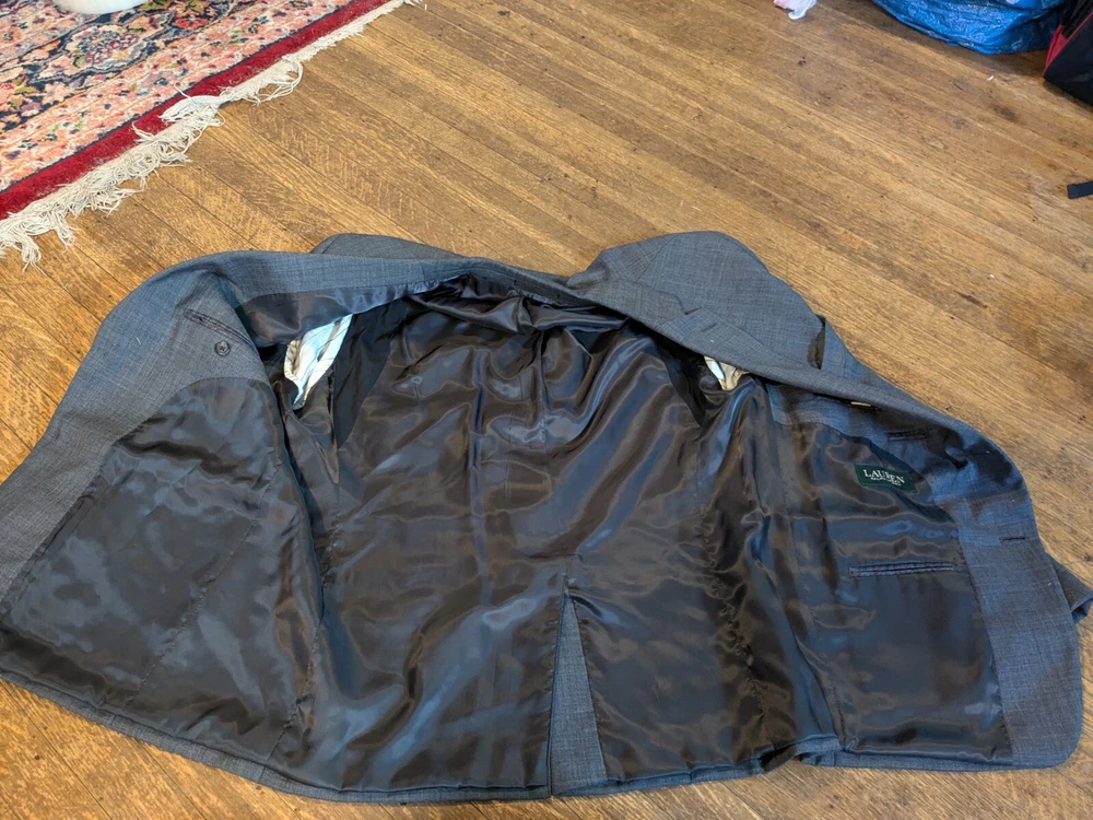Please see the photos to determine value. As you can see, the only thing wrong with this is a bunch of small little pinholes. They're not everywhere but they are on the back significantly. Also on the back of the elbow area. There are only a few on the front of the jacket. I have the measurements in the photos as well. Please ask if you do have any more questions. There is no smoke smell and it came from a clean environment. Elevate your wardrobe with this elegant Lauren Ralph Lauren blazer. The gray, navy blue, and plaid pattern makes it a versatile piece for any occasion, whether it be a wedding, party, or business meeting. The blazer is made of high-quality wool material and features a two-button front and four-button sleeve. It has a regular fit and is available in size 42. This blazer is perfect for the modern man who wants to look classic and stylish. It has inner pockets for added convenience and stretch for added comfort. The blazer is suitable for all seasons, whether it be winter, summer, fall, or spring. It is a designer piece that is perfect for any fashion-conscious man.