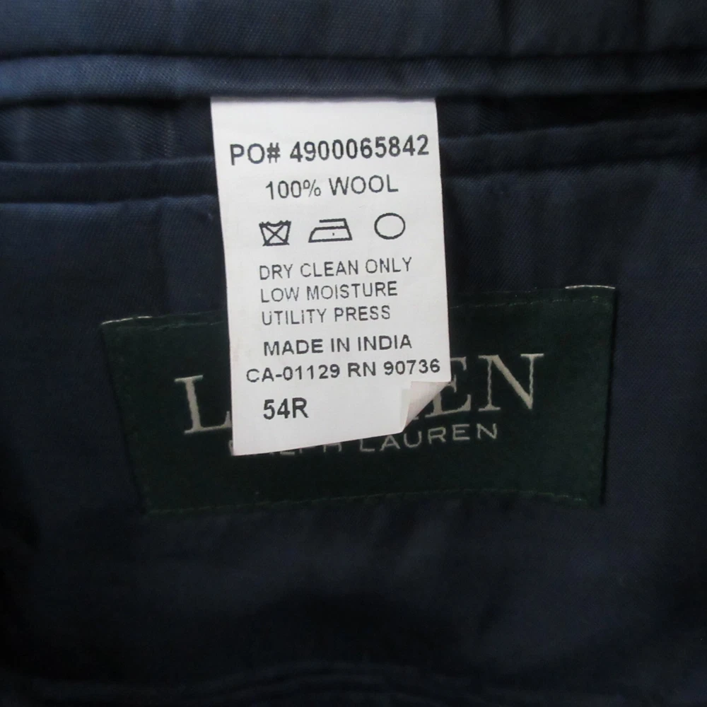 Type: Sport Coat Theme: Classic, Designer, Sports Jacket Cut: Single-Breasted Lining Material: Wool Vintage: No Jacket/Coat Length: Regular Material: Wool Pattern: Check Size Type: Regular Jacket Front Button Style: Two-Button Jacket Sleeve Button Style: Four-Button Chest Size: 54 Color: Blue Country/Region of Manufacture: India Garment Care: Dry Clean Only Jacket Lapel Style: Notch Size: 54 Style: 2 Piece Seller Notes: “Measurements are in photos” Brand: Lauren Ralph Lauren Fit: Regular Department: Men