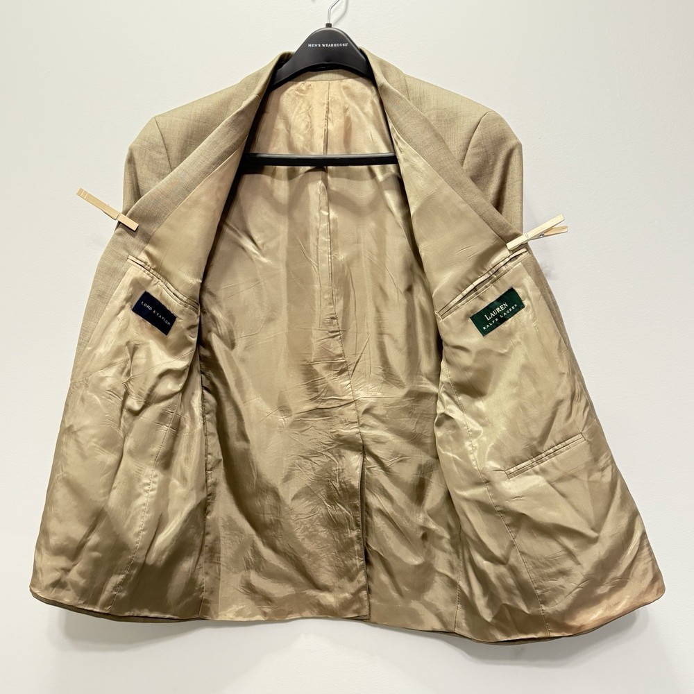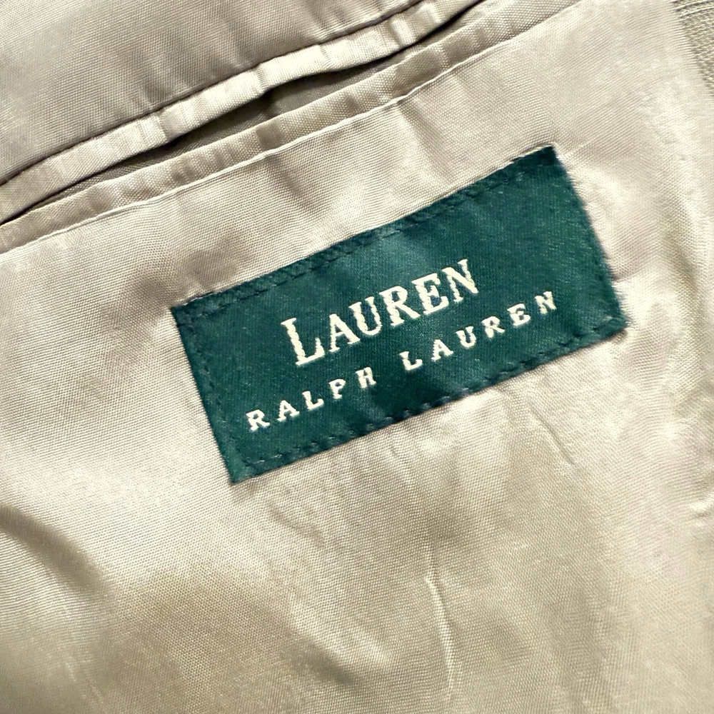 The Lauren Ralph Lauren Lord and Taylor 40S Wool Cashmere blazer is a sophisticated and stylish addition to any man's wardrobe. Made from luxurious cashmere with a wool insulation material, this short-length overcoat is perfect for adding a touch of elegance to any outfit. The beige color and classic design make it versatile for various occasions, while the regular fit ensures a comfortable and flattering silhouette. Dry clean only to maintain its quality, this blazer is a timeless piece that exudes class and refinement. Please review all photos carefully as they are part of the description.