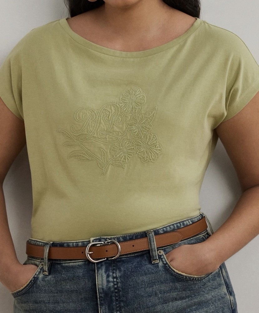 The Lauren Ralph Lauren Women's Top in Plus Size 1X is a chic and versatile piece perfect for various occasions like travel, parties, or casual wear. Made with machine washable fabric, this green top from the renowned brand is designed for plus size women up to 5'9" in height. With its stylish and effortless design, this top is sure to become a staple in any woman's wardrobe.