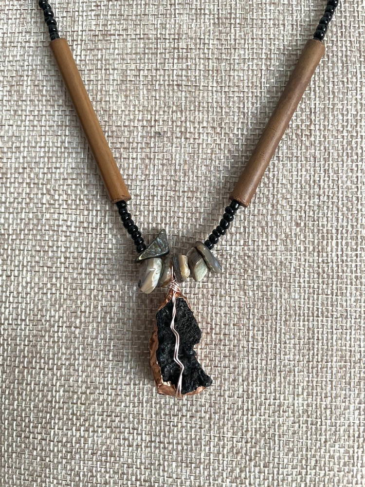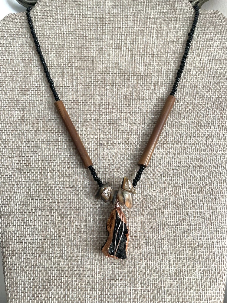 Personalization Instructions: . Setting Style: Wire Wrapped Customized: Yes Features: Nickel-Free Featured Refinements: Wire Wrap Pendant Occasion: Daily Main Stone Treatment: Not Enhanced Chain Type: Ball/Bead Antique: No Sizable: No Seller Warranty: No Secondary Stone: Shell Era: Undated Closure: Lobster Main Stone Shape: Unique Brand: Artisan Main Stone: Lava Rock Theme: Art, Beach, Beauty, Bohemian, Nature, Sea Life, Hippie Country/Region of Manufacture: United States Main Stone Creation: Natural Pendant Shape: Triangle Wholesale: No Personalize: No Metal: Copper Pendant/Locket Type: Amulet Country of Origin: United States Color: Black Vintage: No Type: Pendant Material: Wire, Metal wire, Wood, Copper, Shell, Glass Signed: No Modified Item: Yes Style: Pendant, Wire Wrapped Gender: Female Main Stone Color: White Necklace Length: 18 in