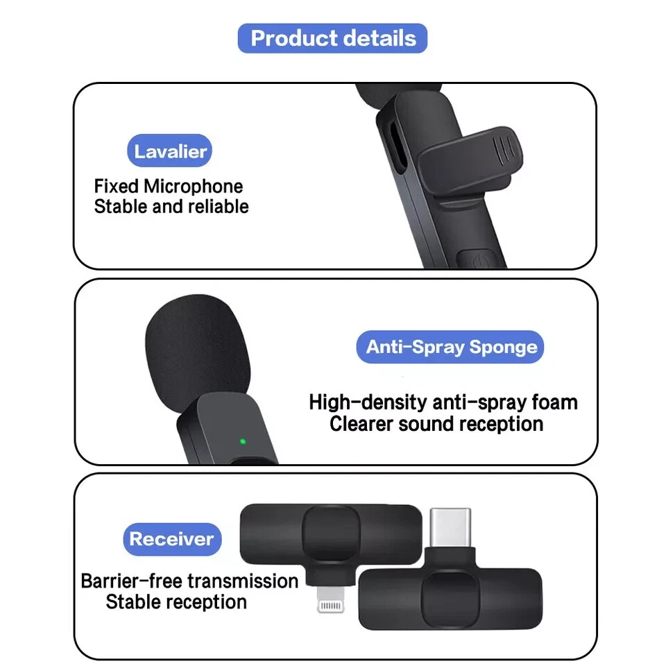 This lavalier microphone is the perfect addition to your Android or iPhone device for high-quality audio and video recording. The wireless connectivity ensures ease of use and freedom of movement, while the compact size makes it easy to carry around. Ideal for musicians and professionals alike, this mini mic is perfect for recording vocals, instruments, and more. The microphone receiver form factor ensures a secure connection and the high-quality construction guarantees long-lasting use. Whether you're a musician or a professional, this lavalier microphone is the perfect choice for your audio and video recording needs.
