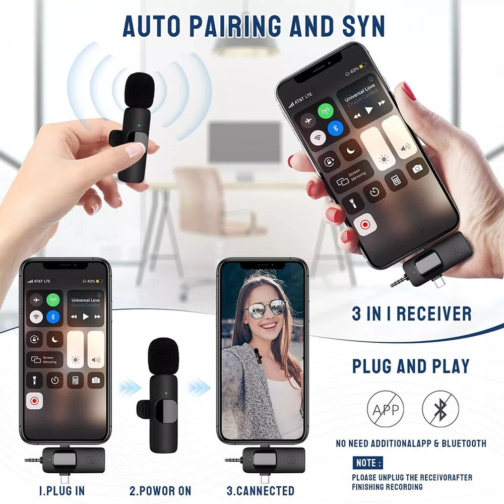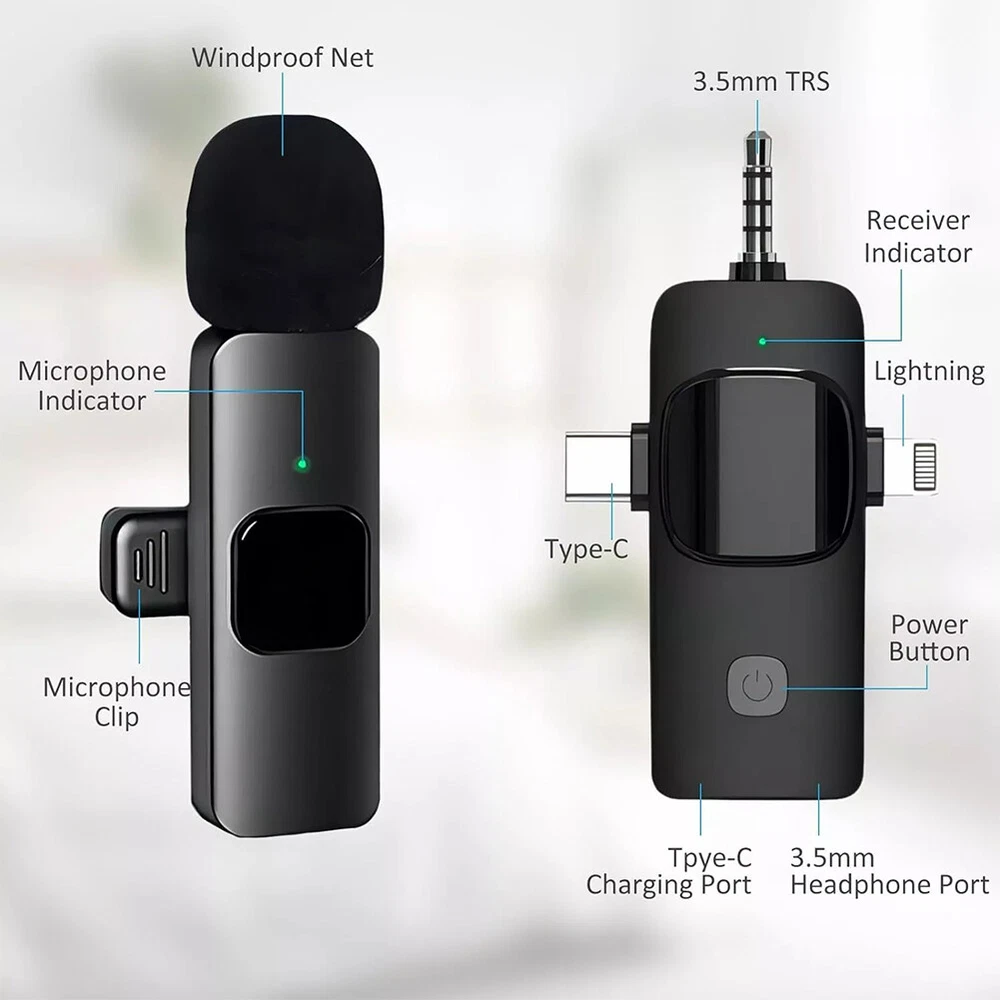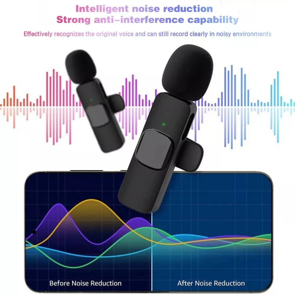 For Samsung Galaxy S23 Ultra 5G S Pen Stylus Black SPen Replacement SM-S918 13.39 USD Free shipping 100PCS Magnetic Building Blocks Toddler Build Mine Magnet World Set 44.99 USD Free shipping 1-10pcs Finger Flush Pulls for Closet Pocket Sliding Barn Door Handle Set 8.29 USD Free shipping 435Pcs Glow In The Dark Luminous Stars Moon Planet Space Kid Wall Stickers Decal 10.99 USD Free shipping 1-4 Pack GPS Tracker Wireless Bluetooth Anti-Lost Wallet Key Pet Dog Cat Finder 8.69 USD Free shipping Bluetooth 5.3 Wireless Headset Smart Polarized sun lenses Glasses Sunglasses 15.69 USD Free shipping Smart Ring Men Women Heart Rate & Blood Oxygen Monitor IP68 Fitness Tracker Gold 24.39 USD Free shipping PP Trading Card Game Storage Deck Case Box For 80+ Collectible Cards Holder 9.19 USD Free shipping Magnetic Trading Card Holders Case Graded Card Slab Display Box Protector Stand 18.99 USD Free shipping Kids Puzzle Track Car Play Set Plastic Railcar Floor Toys Christmas with Vehicle 20.59 USD Free shipping Product Description Feature: - Effective Noise Reduction: This wireless lavalier microphone uses advanced noise cancellation to keep your audio clear by blocking background noise, making it perfect for interviews, video shoots, and presentations. - Easy Plug-and-Play Setup: No app or complex setup needed. Just plug in the receiver to connect wirelessly, letting you focus on your content without tech hassles. - Extended Range: Enjoy up to 50 feet of wireless range, giving you the freedom to move around while staying connected, ideal for video recordings and public speaking. - Long Battery Life: The receiver battery lasts up to 4.5 hours on a single charge, with the option for on-the-go charging for continuous use. - Broad Compatibility: Works with devices that have Lightning or Type-C ports, so you can use it with most modern smartphones, tablets, and audio devices. Specification: Signal to noise ratio: ≥ 60dB Bluetooth version: 5.1 Battery capacity: 220mAh Working time: approximately 15 hours Transmission range: 20m Clarity: 192khz Package Included: 1 x Wireless Microphone 1 x Receiver 1 x Charging Cable or 2 x Wireless Microphones 1 x Receiver 1 x Charging Cable