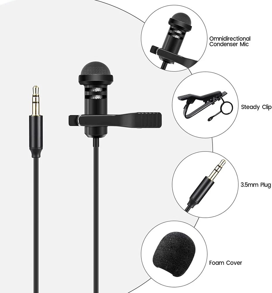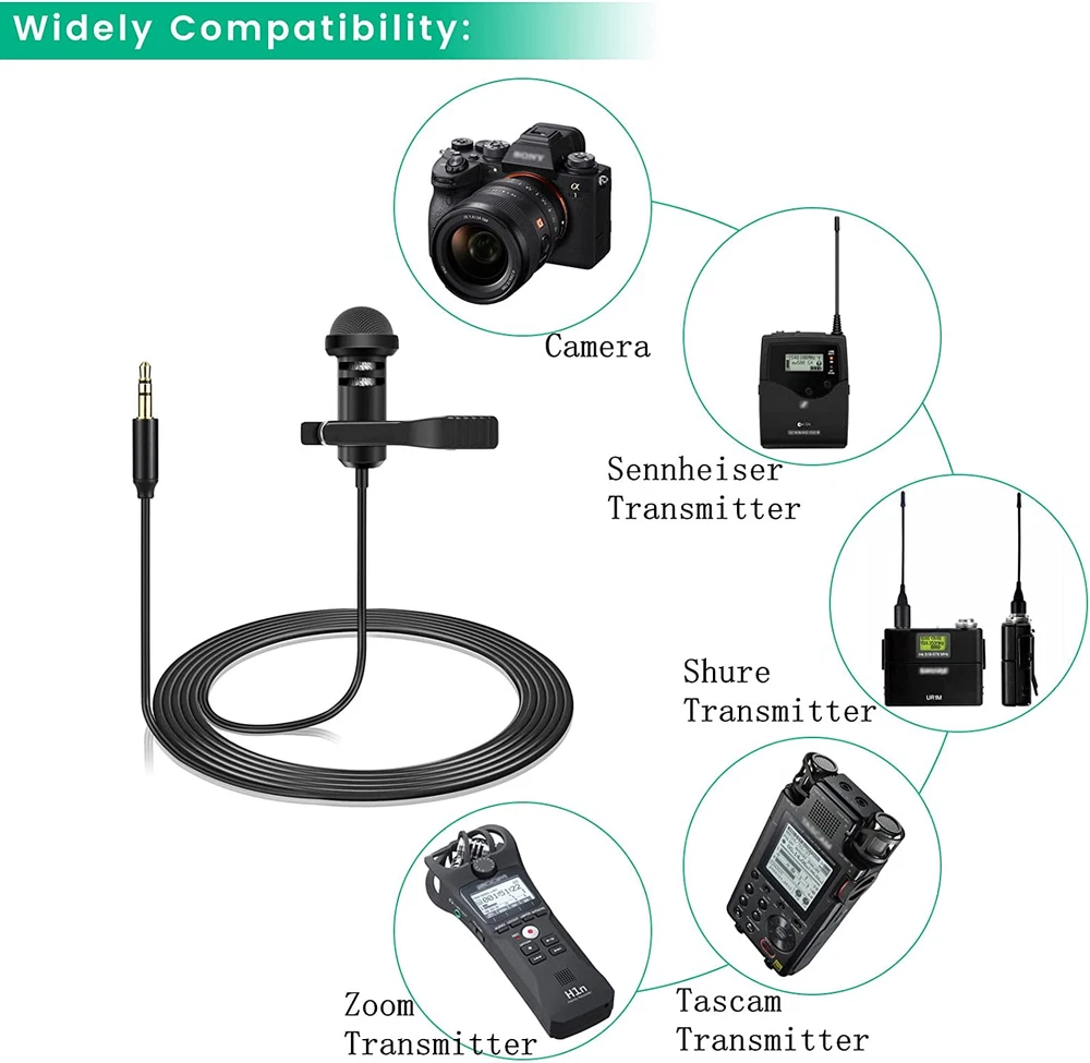Specially compatible with Rode wireless go ii microphone and DJI mic wireless microphone system bodypack transmitter(tx) Conveniently using for vlog, stage, houses of worship, presenters, broadcasters, TV presenters, lecturers, musicians, actors, singers, fitness instructor and any other applications requiring minimum microphone visibility with maximum comfortability and hands-free operation Omnidirectional condenser microphone, less noise, voice clarity, high sensitivity, more flexible, better for picking up voice Black, 1.5 meters / 5 feet; With metal durable lavalier mic clip on clothing lapel; High quality windscreen foam cover, keeps your microphone safe from harmful, dust, moisture, corrosion 3.5mm male plug, 3 poles TRS Gold-plated tip, better surface and less resistance Product Description Omnidirectional Condenser Lavalier Lapel Microphone, professional vocal pickup condenser mic, using for Rode or DJI wireless system bodypack transmitters. With 1/8"(3.5mm) golden-plated connector (3 poles tips, TRS) and windscreen foam cover. Includes a metal clip can be put on anywhere of clothes. Features: Connector:3.5mm Plug Type:Electret Condenser Polar Pattern: Omnidirectional Cable Length:5 feet / 1.5 meters Products include: 1 x Lav Microphone 1 x Tie Clip 1 x Windscreen Foam