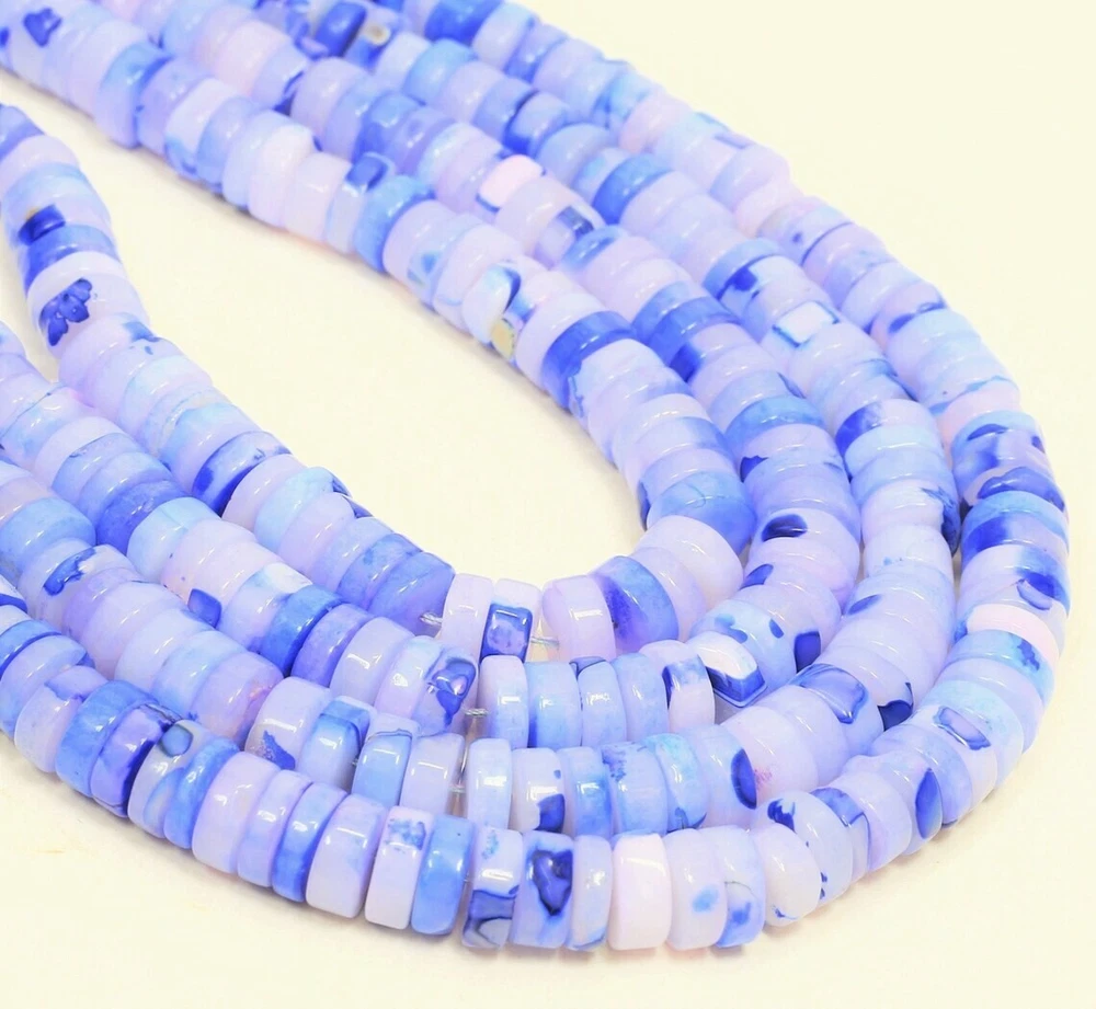 Made by Radhikagemsnbeads Supplies for making crafts Materials: Gemstone Bead hole size: .50 millimetres Beautiful Lavender Blue dot Opal Smooth Heishi Plain Tyre Shape Gemstone Beads, 7mm-9mm Lavender Opal wheel shape Beads jewelry craft making Gemstone : Opal Color : Lavender Blue Dot color Size : 7mm to 9mm approx. Shape : tyre/ Wheel Style : Smooth Handmade Beads Quality : AAA For : Necklace, Jewelry Design, Craft Making, Gift,Etc. Length : 8 / 16 Inches