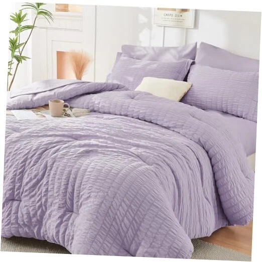 Lavender Full Size Comforter Sets Seersucker 7 Pieces, All Season Luxury Bed