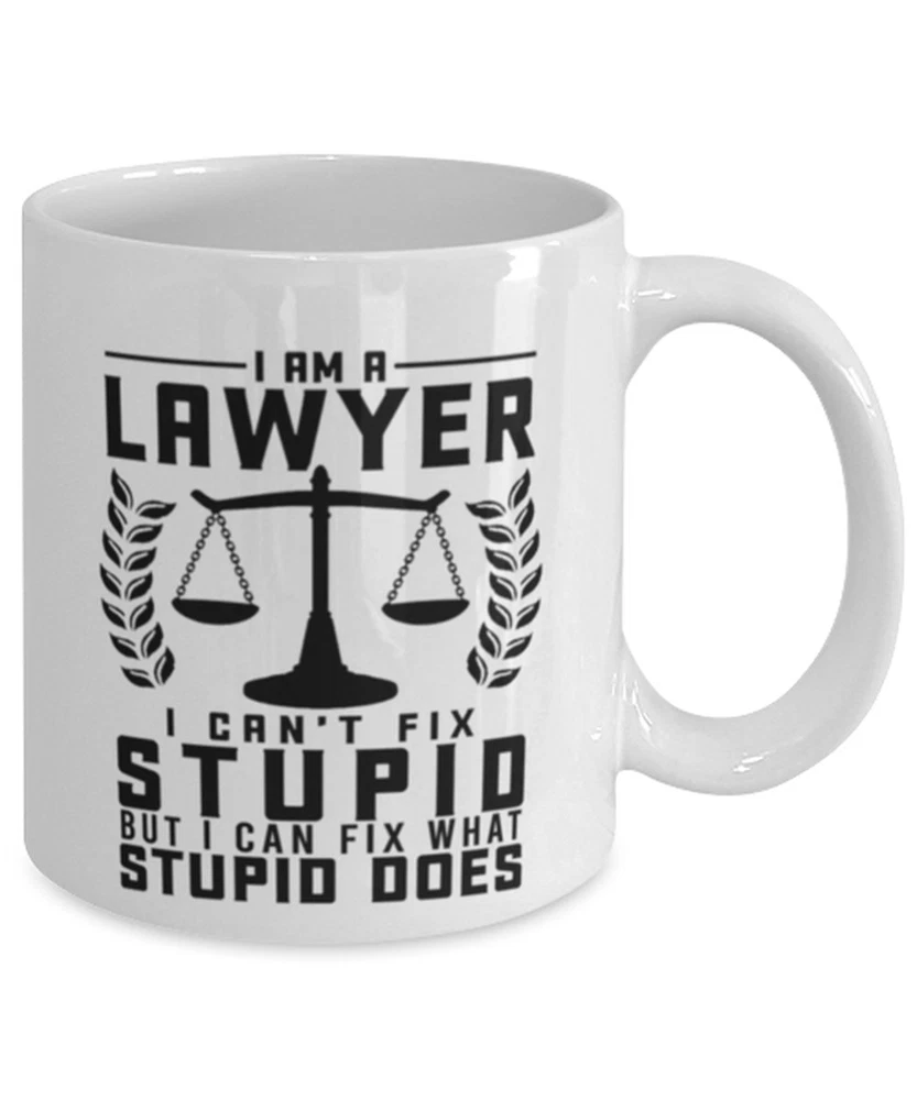Lawyer Funny Graduation Mug I'm A Lawyer I Cant Fix Stupid But I Can Fix What Product Details.. This high quality 11oz. ceramic white mug has a premium hard coat that provides crisp and vibrant color reproduction sure to last for years. Perfect for all hot & cold beverages. The highest quality printing possible is used. It will never fade no matter how many times you wash it. Material: 100% Ceramic. Print both sides. Dishwasher and Microwave Safe. High Gloss + Premium White Finish. Printed in the U.S.A. Personalized & Custom. We support personalized and custom mug to add custom, when placing an order, you can add notes to the "order note" in shipping address section. Also you can contact us directly via message. Shipping Info. Ready to ship in 1 to 2 business days, All products are made-to-order and proudly printed in the United States. Shipped by USPS and DHL, You will receive your order in 5-7 days. Replace & Refund. All products are defective during shipping broken, chipped will be replaced free of charge. You are not satisfied with the product, we will refund 100% money to you. If any other issues arise, please do not hesitate to message, we would be more than happy to assist you.