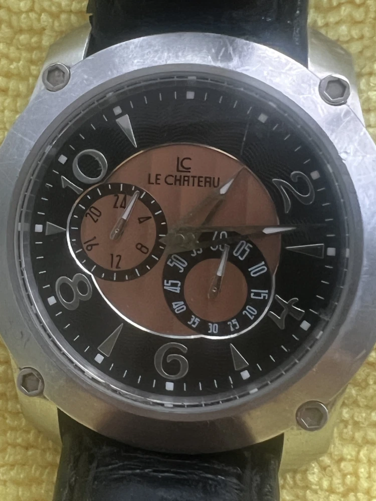 Introducing the Le Chateau men's watch 5424 is a sophisticated timepiece that is perfect for any occasion. With a travel, luxury, driver, and casual style, this wristwatch is a must-have for any fashion-forward man. It features a reference number of 5424 and is designed to be a wristwatch.The brand of this watch is Le Chateau, and it is made for men. The model number is 5424, and it has a sleek and stylish design. This watch is perfect for those who appreciate the finer things in life and want a timepiece that can keep up with their sophisticated lifestyle. countiue reading below. Notes to buyer- watch is missing parts inside if you look close its missing (12) and (1) numbers, but the watch works please see video that i have provided. also the strap/band is coming off untreated in the inside need repair or replace. if you have questions please don't hesitated to ask, i be happy to answer them. "Important Notice for Buyers: This is a pre-owned item that has been previously used. Please note: - The item does not come with its original packaging. - Returns are only accepted if the buyer pays for the return shipping label. Thank you for your understanding."