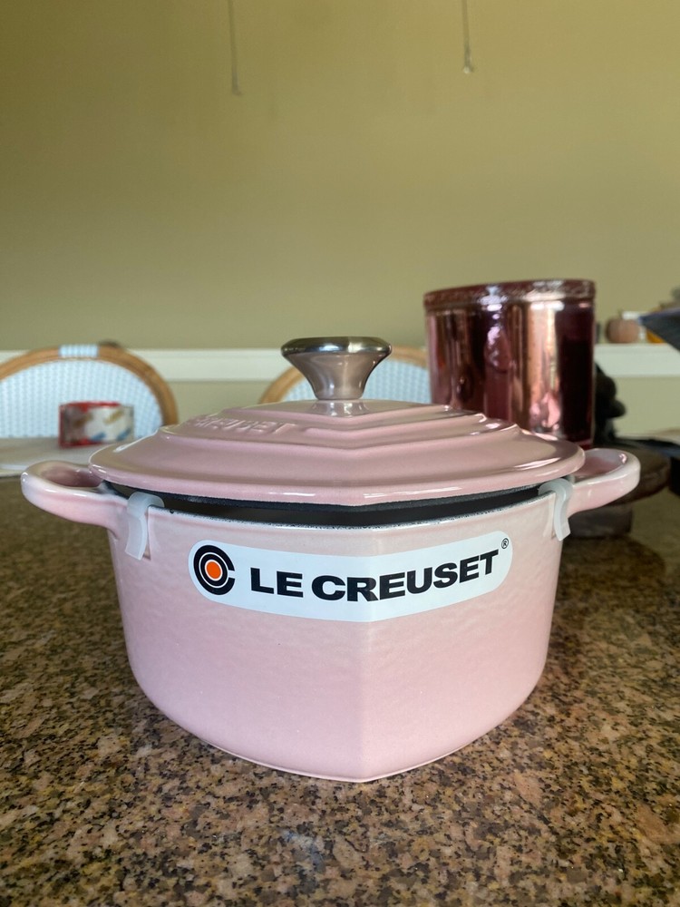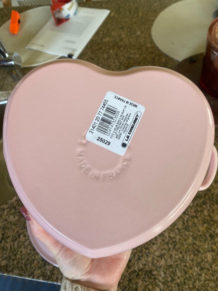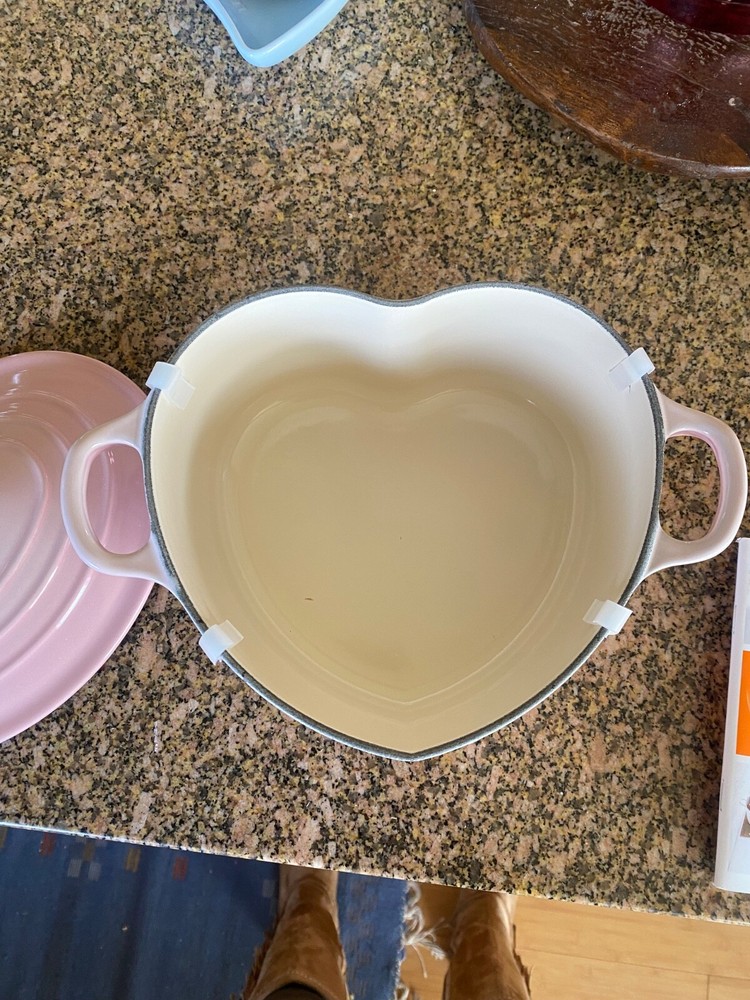 Brand new. Experience the magic of slow cooking with the Le Creuset Heart Cocotte, a 2-quart Dutch oven that promises both aesthetic appeal and culinary excellence. Crafted with high-quality cast iron and finished with a charming enamel in a delightful shell pink, this piece is not just a functional kitchen staple but also a collectible that brings a pop of color to your cookware collection. Designed for versatility, the cocotte is suitable for all stove types—electric, gas, and induction—making it a universally compatible addition to your kitchen. With its unique heart shape and included lid, this Dutch oven is perfect for crafting hearty stews, braised meats, and more while bringing a touch of French craftsmanship to your cooking routine.