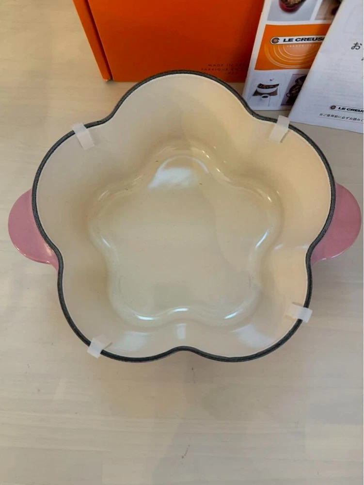 Model: Le Creuset Flower Vintage: No Antique: No Material: Cast Iron MPN: Does not apply Type: Dutch Oven Brand: Le Creuset Seller Notes: “In good condition” Original/Licensed Reproduction: Original Country/Region of Manufacture: France Set Includes: Lid Color: Berry Capacity: 2.25 qt/ 2L Features: Dishwasher Safe, Double Handle, With Lid Type of Oven: Electric, Gas, Induction, Pizza Oven, Steam Oven Stove Type Compatibility: Electric, Gas, Induction Shape: Flower