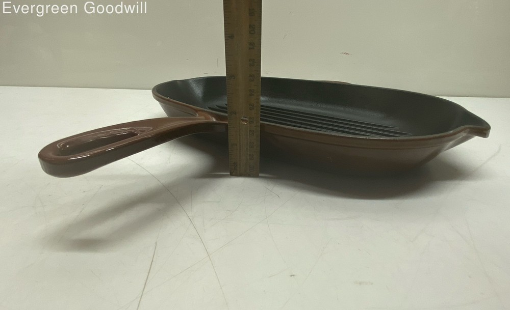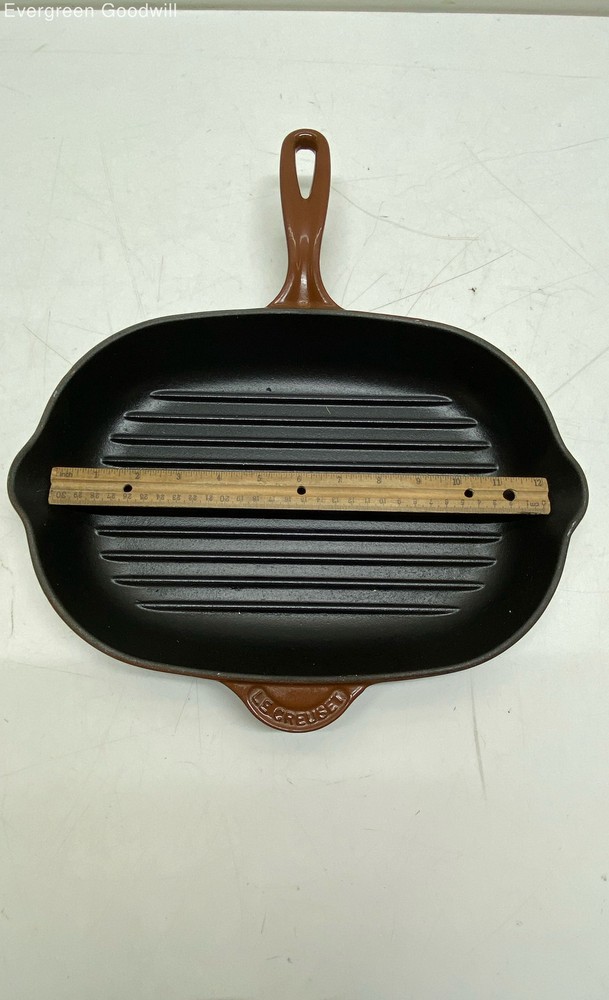 Oval Griddle Pan Le Creuset Brown/Black Cast Iron/Enamel Oval Griddle Pan Brand: Le Creuset Style: Oval Griddle Pan Type: Oval Griddle Pan Color: Brown/Black Material: Cast Iron/Enamel Condition: Good - shows some sign of wear Evergreen Goodwill helps people get jobs across Northwest Washington by offering high-quality free job training, education and job placement. We empower individuals to overcome barriers to working by providing comprehensive support and connecting them with life-changing job opportunities, ensuring they are career-ready and can support themselves and their families. ***Disclaimer*** All items were donated to Evergreen Goodwill of Northwest Washington with no history or provenance. The auction is for all items pictured. Items may need servicing and/or benefit from a cleaning upon arrival. Please see photos for additional details and feel free to ask questions. PAYMENTS Please note that your entire order will be canceled by eBay if the oldest item exceeds 7 days without payment. Once an order is canceled, we are unable to re-invoice and the item will be relisted. For a combined shipping invoice, please send us one request within 5 days of winning the first item to avoid cancelation of your entire order. Once a combined invoice has been sent, we are unable to add additional items to the invoice. SHIPPING Local pickup only available to items listed as Local Pickup at this time. Interntaional shipping is not available at this time. We offer combined shipping as long as items will ship safely together. Auctions must end within 5 days of each other to be eligible for combined shipping. Please hold off on payment until all auctions have ended then proceed to checkout. Please do not pay for any items individually if you wish to have them combined - they must be paid at the same time. Items listed for flat-rate shipping are not eligible for combined shipping. PO Box addresses will require USPS shipments as FedEx Ground will not deliver. If FedEx is selected we may need to invoice for additional shipping costs.