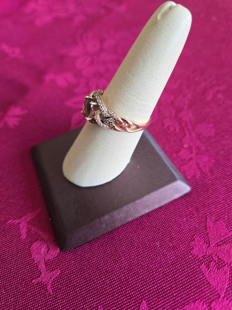 Le Vian 14K Strawberry Gold Chocolate Quartz Ring w. Chocolate/Vanilla Diamonds size 9. Will ship for inspection ASAP once cleared payment is received. Thanks for looking and God bless, Jeremy