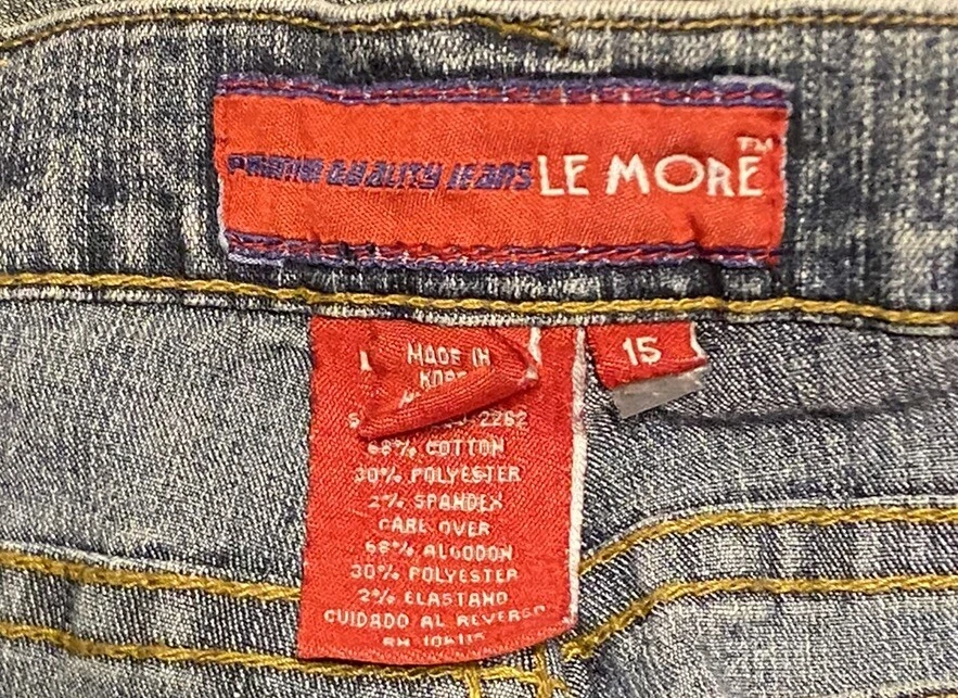 Elevate your style with these trendy Le More jeans featuring an NBA teams patch. These classic fit, medium wash jeans are perfect for any casual occasion. The straight style with logo accents adds a touch of uniqueness to your outfit. The jeans are made of high-quality fabric ensuring comfort and durability. Available in size 15, these blue jeans are a must-have for any women's wardrobe.