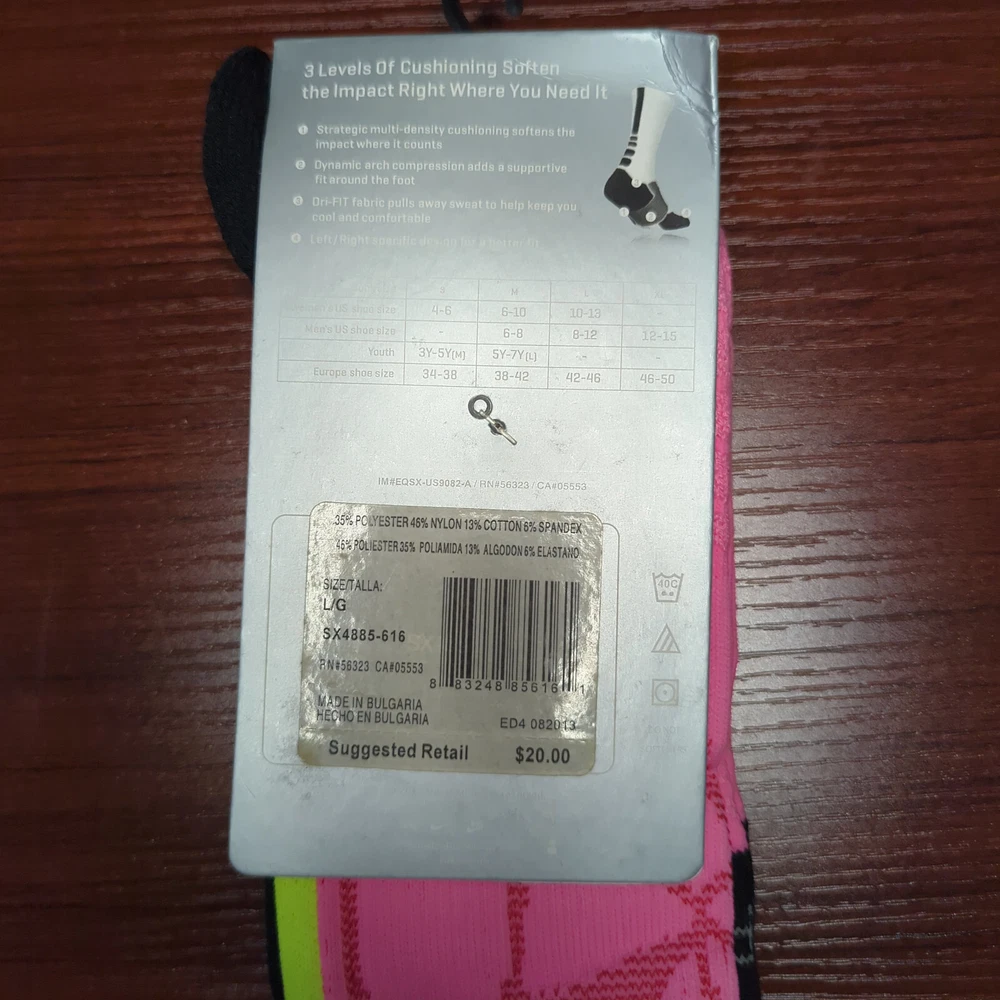 LeBron Nike Hyper Elite Socks Pink/Yellow Size Large Brand new with tags 100% Authentic Fast Shipping: Ships in 1-2 business days from Illinois Many colors available, check out my page to see them all Message me with any questions The Nike Elite Basketball Crew Socks feature Dri-Fit fabric that keeps your feet cool and comfortable. It’s made for durability and offers a supportive and snug fit. The Nike Elite Basketball Crew Sock is a must own for any basketball player. Perfect for basketball, volleyball, and other sports Pair different colorways with your Kobe's, Lebron's, KD's and more. Performance basketball crew socks deliver superior fit and comfort. Strategically placed cushioning absorbs impact Dri-Fit technology helps keep feet feeling dry and comfortable. Left/right anatomical design for targeted comfort. Ventilation zones promote breath-ability to keep you cool 63% polyester, 18% nylon, 16% cotton, 3% spandex Size Guide Small: Youth 4-6 Medium: Men's 6-8 Large: Men's 8-12 Extra Large: Men's 12-15