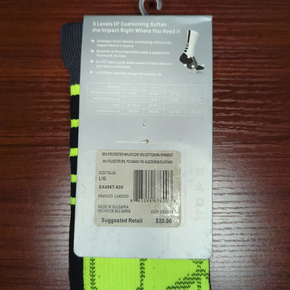 LeBron Nike Hyper Elite Socks Volt Yellow/Black Size Large Brand new with tags 100% Authentic Fast Shipping: Ships in 1-2 business days from Illinois Many colors available, check out my page to see them all Message me with any questions The Nike Elite Basketball Crew Socks feature Dri-Fit fabric that keeps your feet cool and comfortable. It’s made for durability and offers a supportive and snug fit. The Nike Elite Basketball Crew Sock is a must own for any basketball player. Perfect for basketball, volleyball, and other sports Pair different colorways with your Kobe's, Lebron's, KD's and more. Performance basketball crew socks deliver superior fit and comfort. Strategically placed cushioning absorbs impact Dri-Fit technology helps keep feet feeling dry and comfortable. Left/right anatomical design for targeted comfort. Ventilation zones promote breath-ability to keep you cool 63% polyester, 18% nylon, 16% cotton, 3% spandex Size Guide Small: Youth 4-6 Medium: Men's 6-8 Large: Men's 8-12 Extra Large: Men's 12-15
