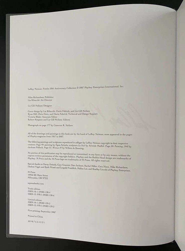 LeRoy Neiman signed for me IN PERSON his MUST HAVE Playboy Hard Cover BOOK 'Femlin.' A VERY RARE SIGNED EDITION by Mr. Neiman, here are some EXCITING details about this book: ** FIRST EDITION FIRST PRINTING ** ** SIGNED/DATED IN BOLD BLACK MARKER ON THE TITLE PAGE ** ** HARDCOVER EDITION ** ** NON SMOKING ENVIRONMENT ** ** PUBLISHERS PRICE STILL INTACT ** ** VERY DESIRED SIGNATURE IN BOOKS ** ** NO REMAINDER MARK ** ** NOT SIGNED TO ANYONE ** ** BRAND NEW UNREAD CONDITION ** ** GREAT COLLECTIBLE ** ** SLIGHT CREASE IN BOTTOM LEFT CORNER OF DUST JACKET ** ** MUST HAVE FOR ALL FANS OF MR. LEROY NEIMAN, PLAYBOY ** We will gladly issue A SIGNED CERTIFICATE OF AUTHENTICITY with your signed book. Upon receipt of your payment, we will mail you out your item via BOXED USPS MAIL POSTAGE WITH DELIVERY CONFIRMATION. We suggest insurance for packages but will leave that option to the buyer.