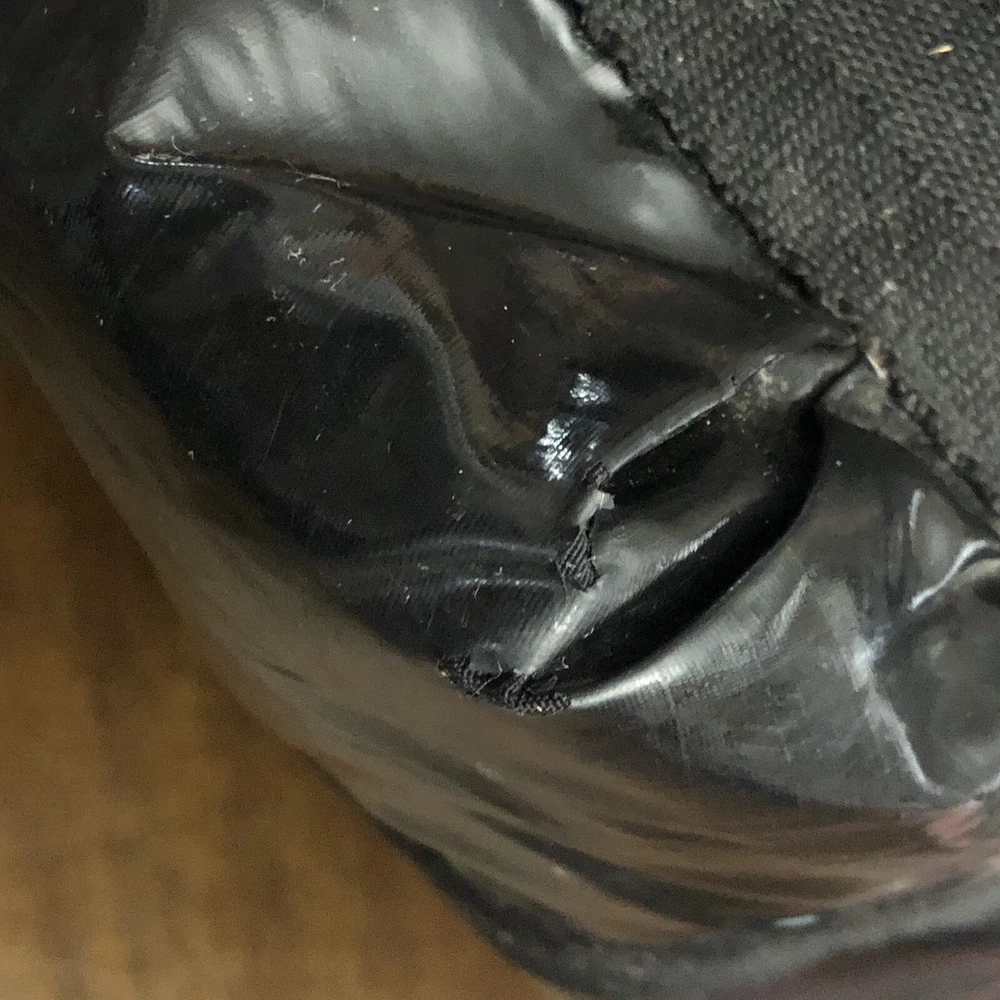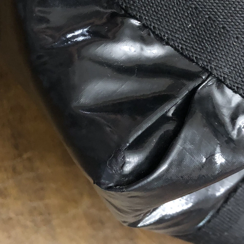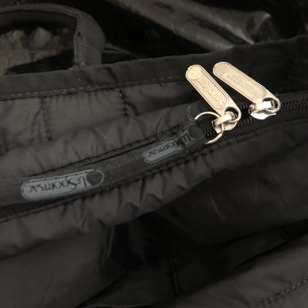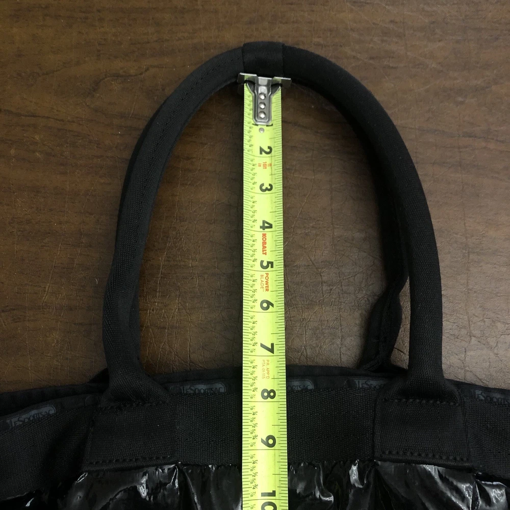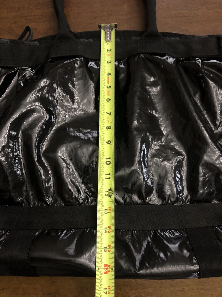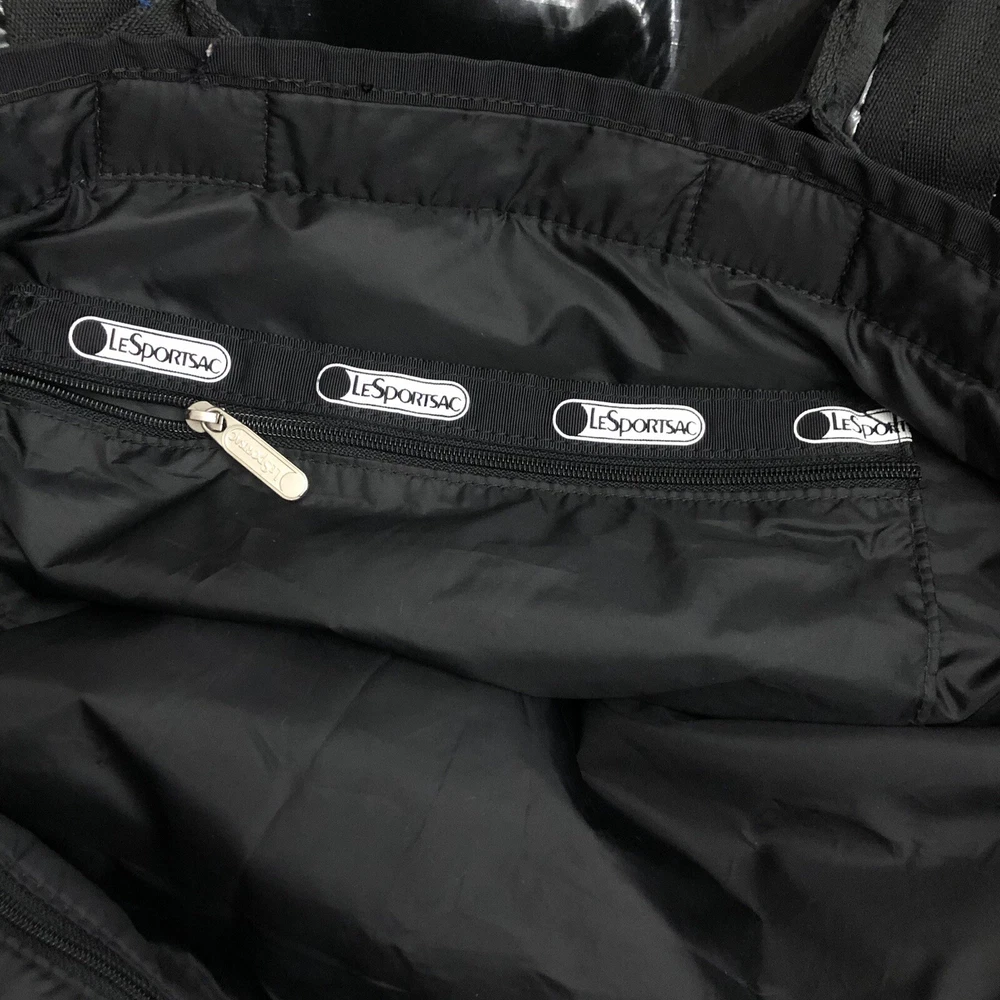 LeSportsac Deluxe Heavy Duty Extra Large Travel Bag Black Patent Rare! Retired! Bag is pre-owned in good condition! It has a very light scratch and peeling/wear on the bottom edges shown in photos! Not visible when worn. Bag is clean no snags. Measures approximately 21” L x 16” H x 7” D. The handle drop is about 7-1/2”. One zip closure middle compartment and two open compartments. Very lightweight and spacious. Each side has a claw hook to adjust top width. Approximate Measurements in photos! Thank you for stopping by!