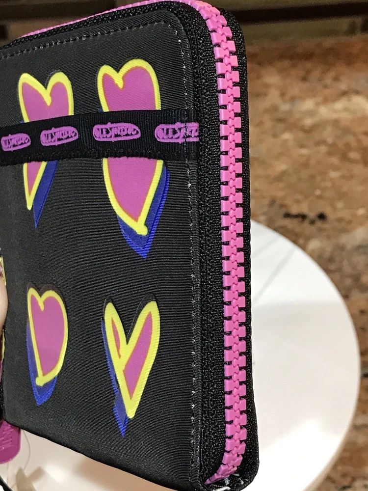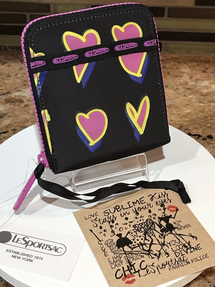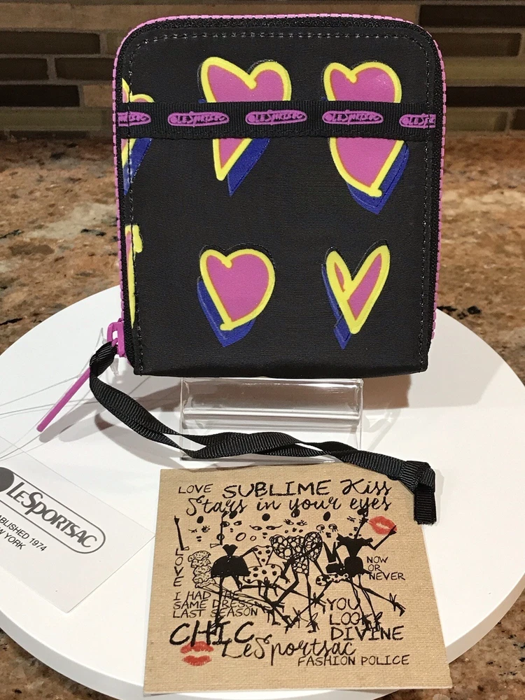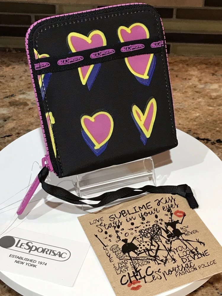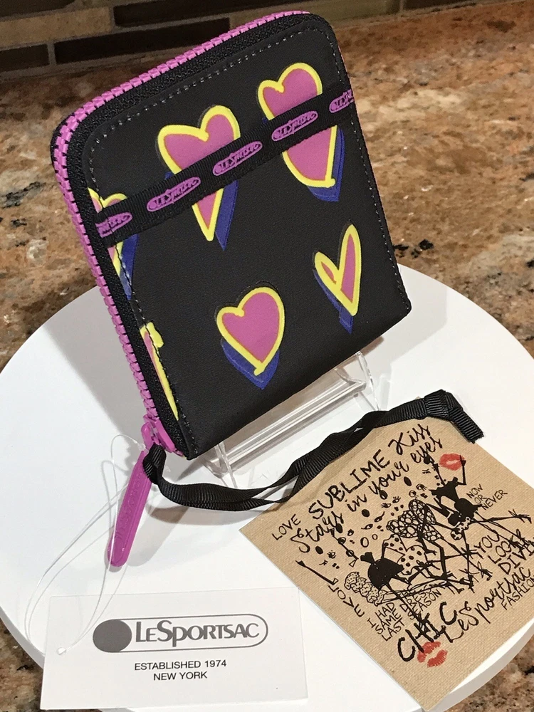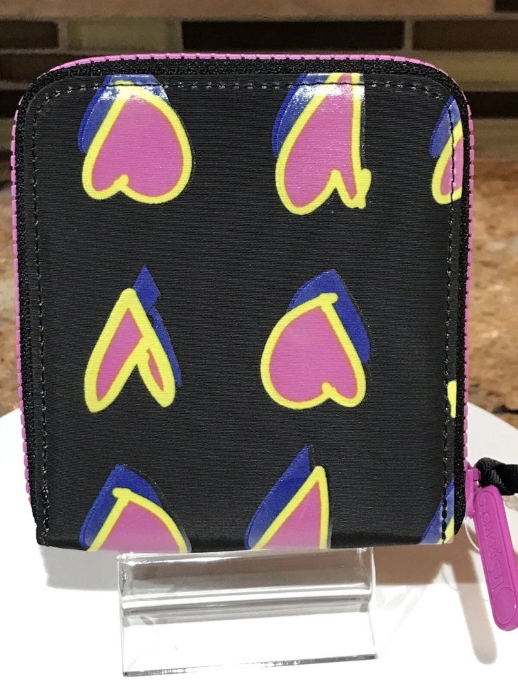 Accents: Zipper, Logo Features: Credit Card, Separated Compartments, ID Window Theme: Heart Brand: Le SportSac Material: Nylon Type: Wallet Character: Heart Size: M Fabric Type: Nylon Department: Women Color: Multicolor Pattern: Heart Style: Zip-Around
