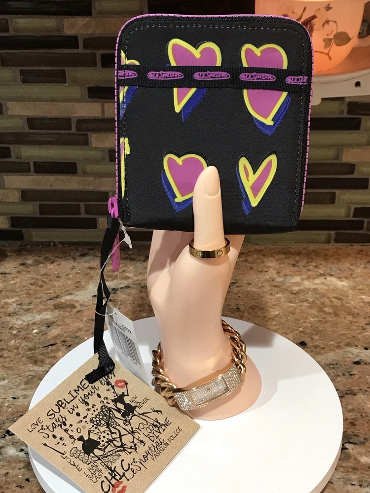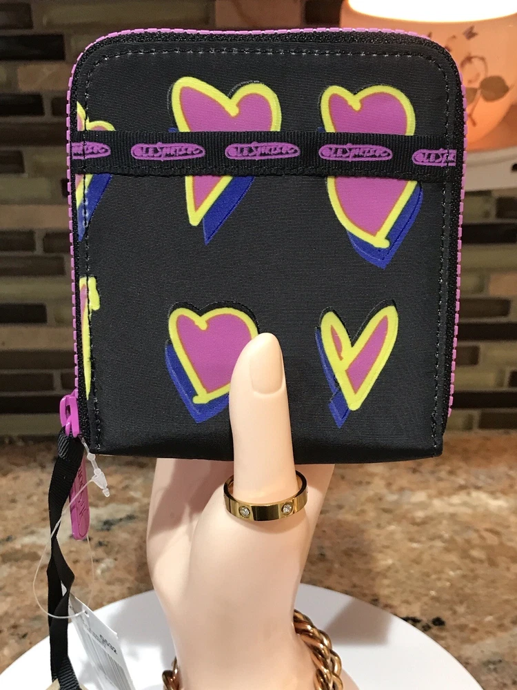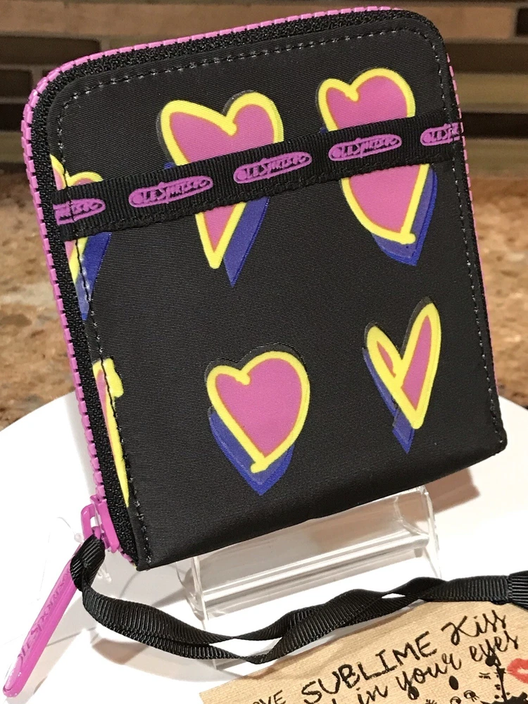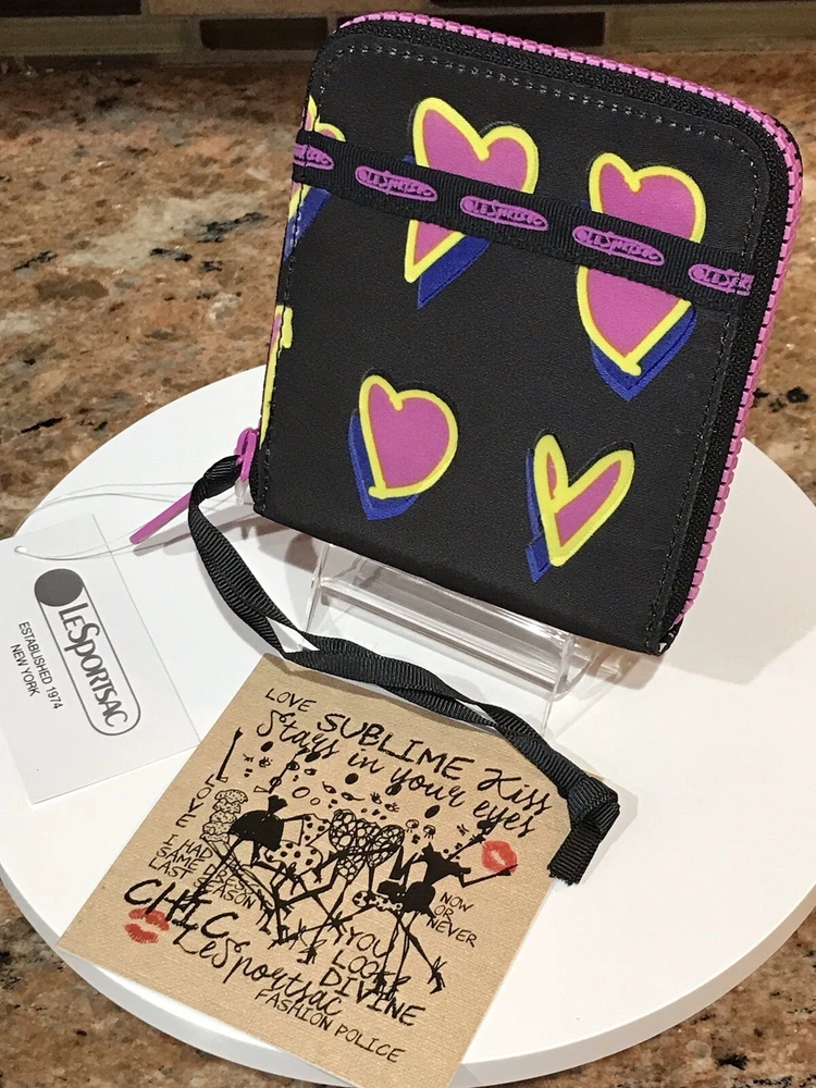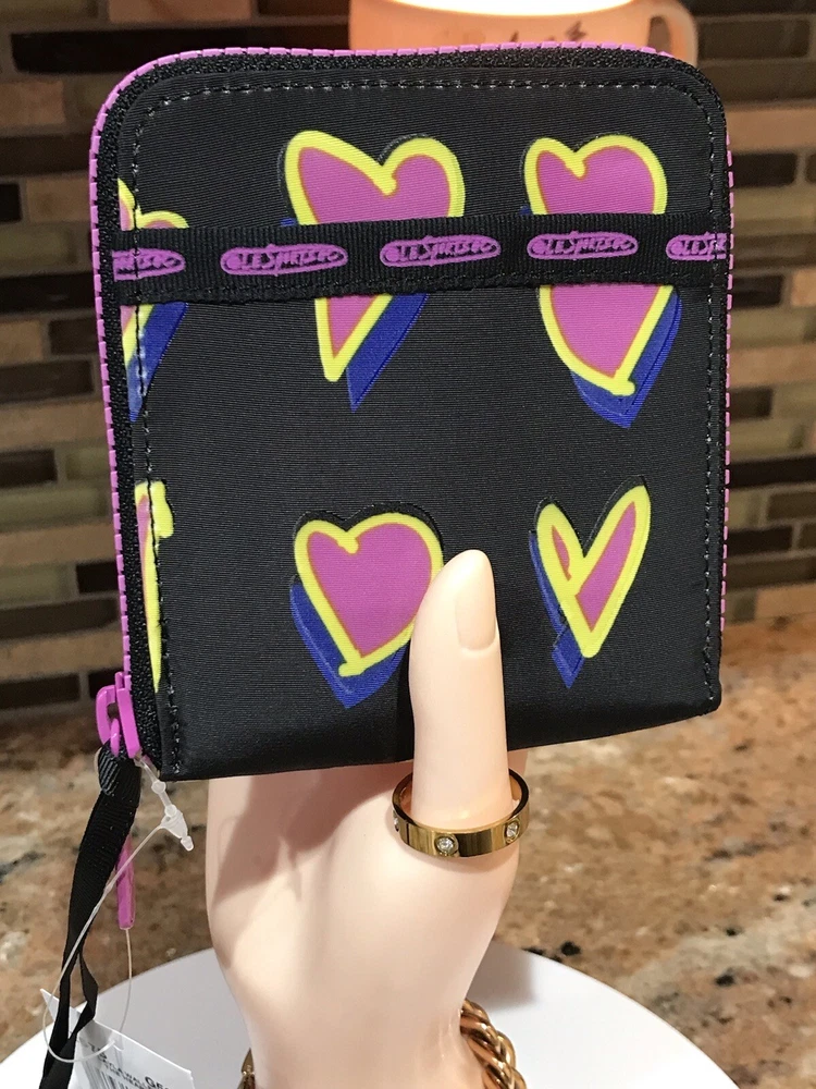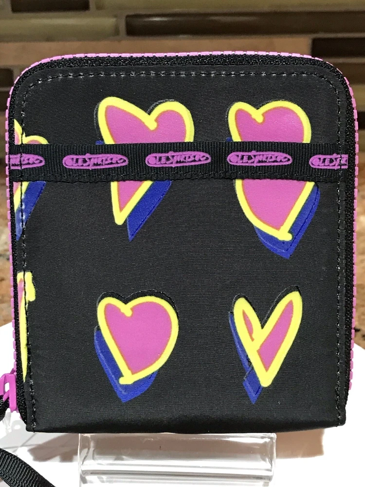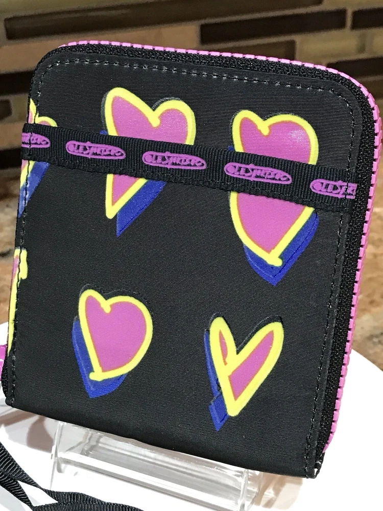 Accents: Zipper, Logo Features: Credit Card, Separated Compartments, ID Window Theme: Heart Brand: Le SportSac Material: Nylon Type: Wallet Character: Heart Size: M Fabric Type: Nylon Department: Women Color: Multicolor Pattern: Heart Style: Zip-Around