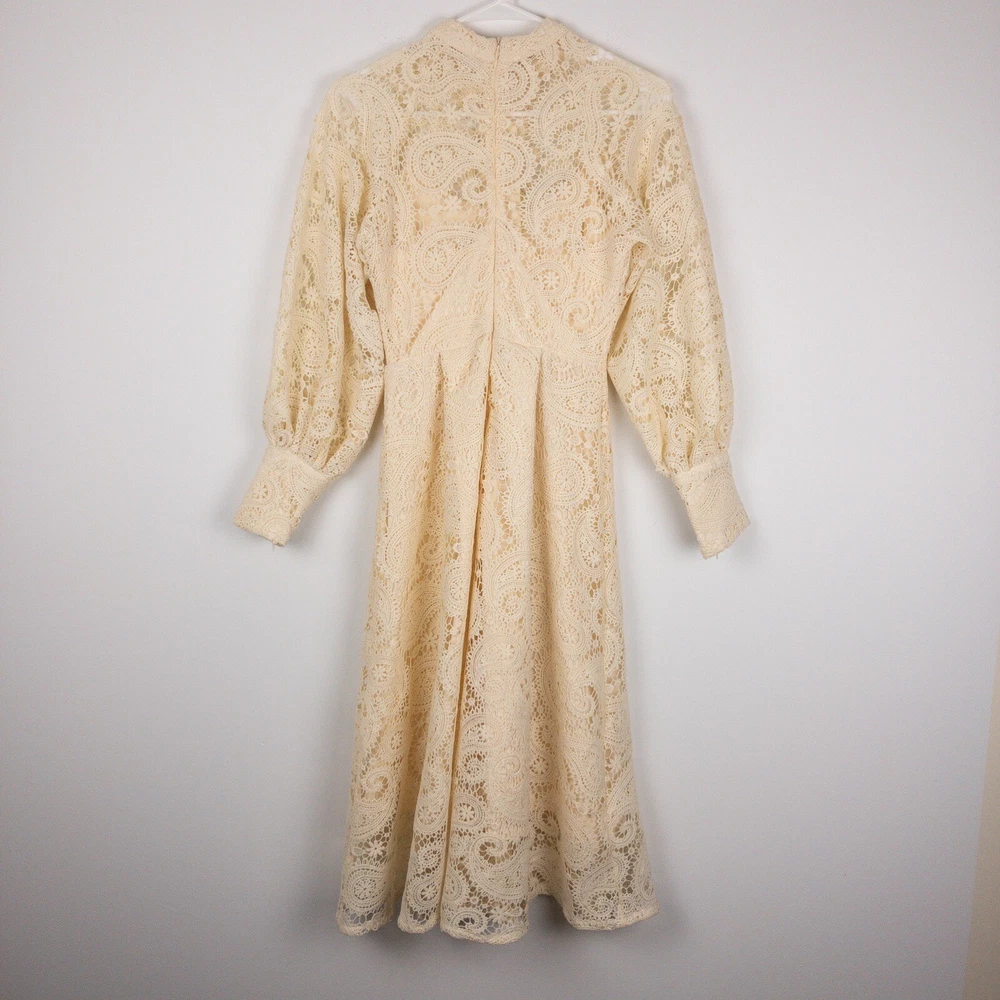 Item Description : Women's Lea Collection Dress Notes & Features : Delicate paisley lace crotchet Button front Zip back Zip up sleeves Victorian style Elegant Size : Adult Small Measurements : Please see photos. If a measurement is missing, ask and we will get it for you. Condition : Good pre-owned condition. Flaws : None found. Shipping : We always ship via the USPS with a tracking number ASAP, Monday-Saturday, and do our best to take care of you and the item at ALL times. Please see the Shipping, returns, and payments section for all available shipping options and prices. Packaging : The item is packaged/shipped in a sealed plastic bag inside of a sealed poly bag mailer. Storage : All items are stored in a smoke free home. Any questions? Please ask; we are happy to answer. Thank you for looking!