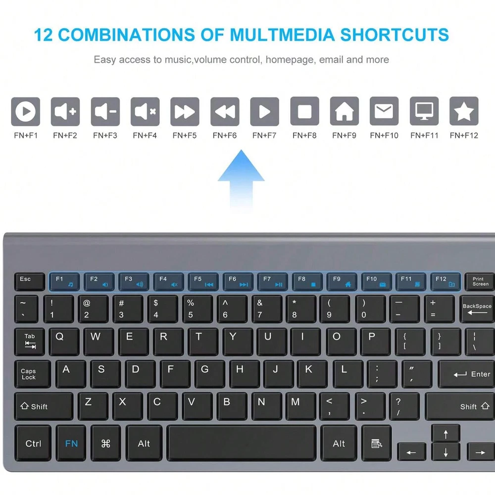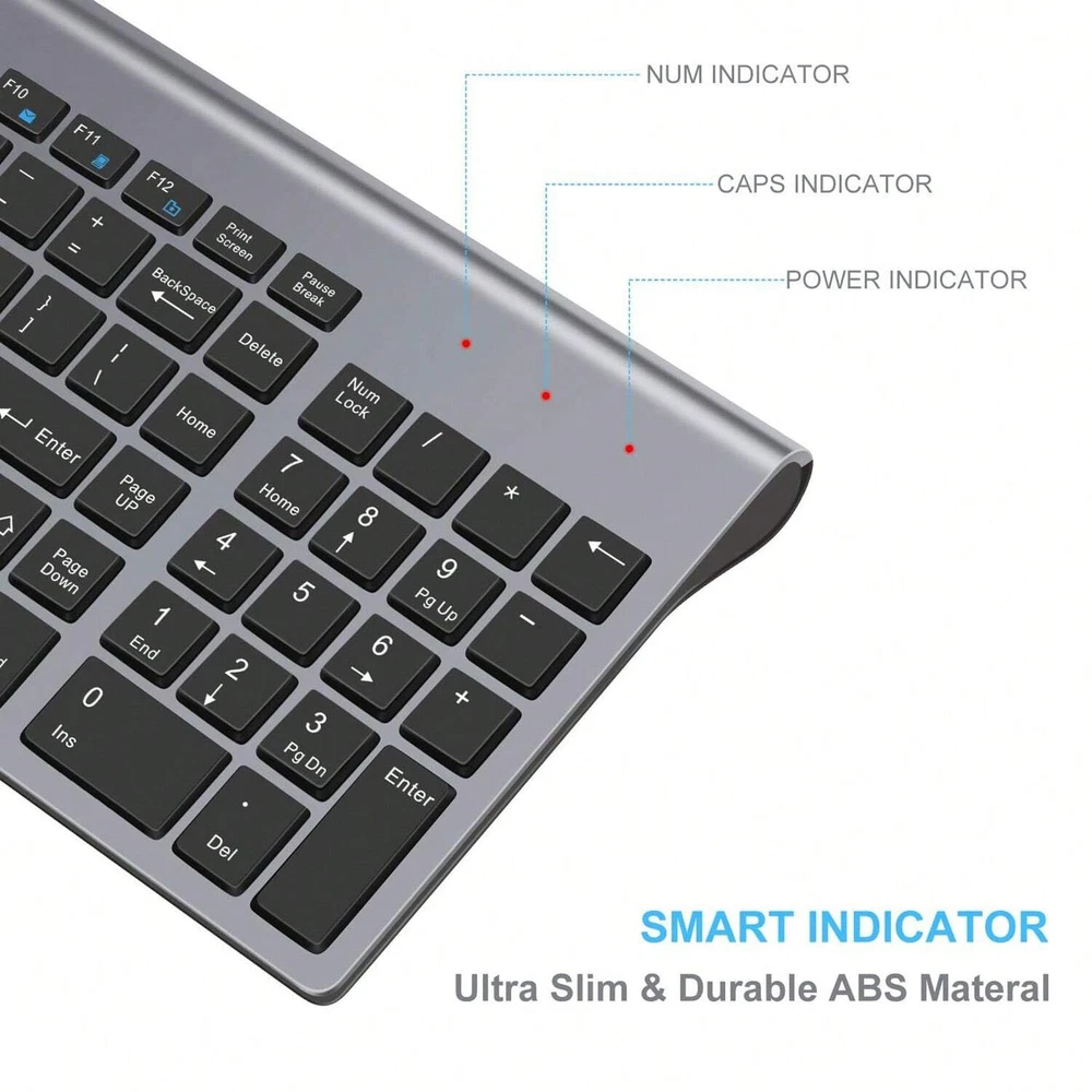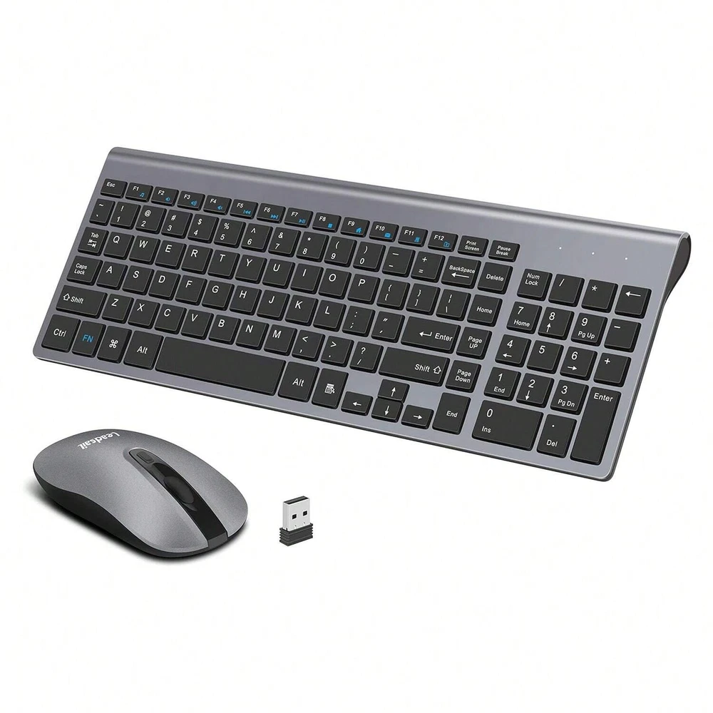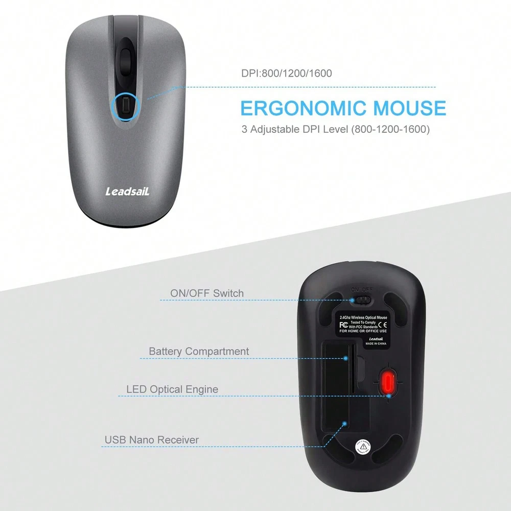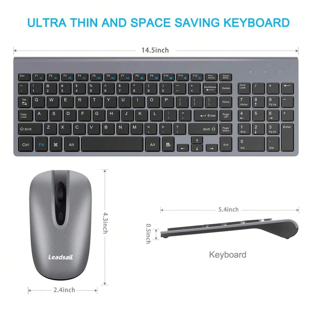 Less Noise: The wireless USB keyboard adopts scissors structure button, reducing 90% of the clicking noise. Silent click wireless mouse will allow you to do your job without disturbing others. Compact Size: The wireless keyboard is in compact size design with number pad, saving the space on your desk.The mouse is ambidextrous to fit in both left and right hands. Easy to Use: LeadsaiL wireless keyboard features 12 multimedia shortcuts allowing instant access to play, pause, previous, next, volume, mute and more. (Note: this function is not compatible with MacOS). Energy Saving: The wireless keyboard and mouse combo will go into sleeping mode to save battery consumption while it's not in use for 3mins. Click or press any key or button to wake them up. (1*AA battery for the mouse and 2*AA batteries for the keyboard, Battery not included in the package) Plug and Play: The wireless mouse and keyboard set shares a 2-in-1 USB receiver that is placed inside the mouse next to the battery compartment. The 2.4G wireless connection can be up to 10 meters(33 ft) away.