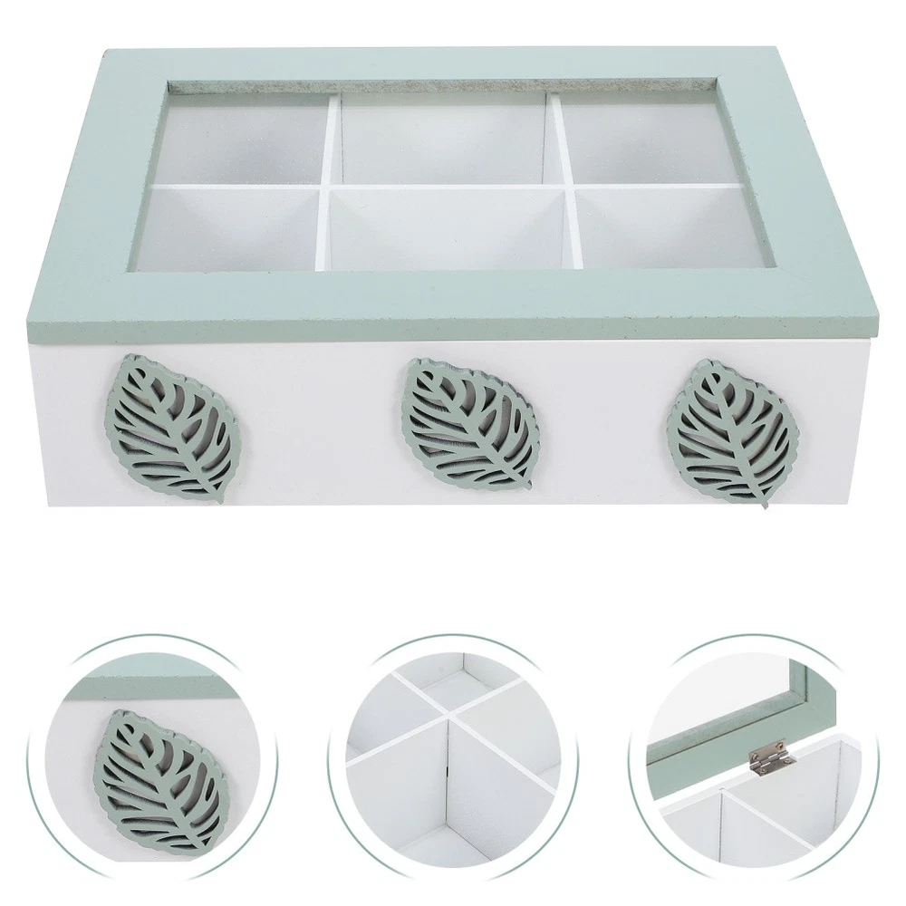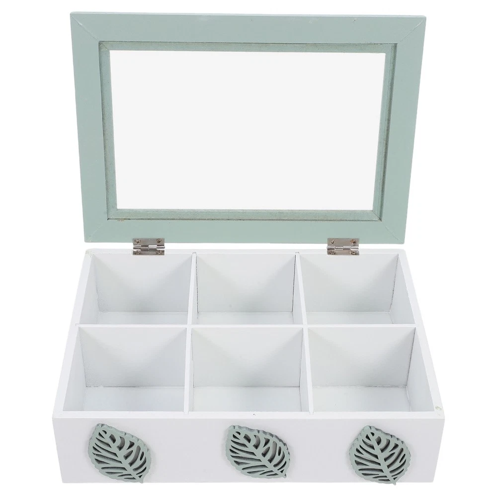 Leaf Wooden Storage Box Tea Bag Organizer Containers with 6 Slots