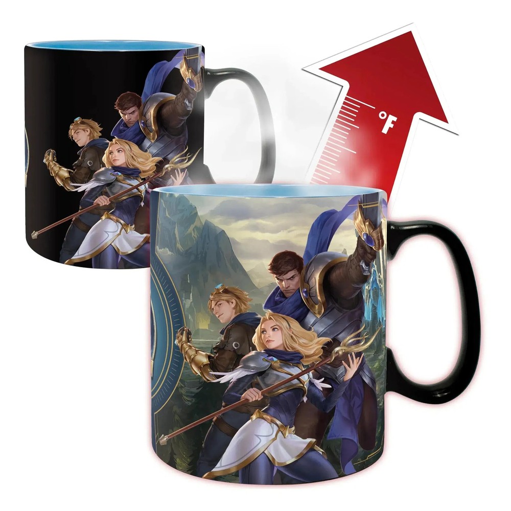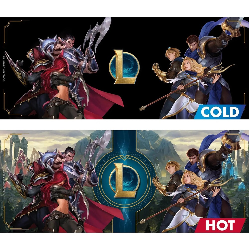 League of Legends - Demacia vs. Noxus Heat-Change Ceramic Mug (16 oz.) - ABYstyle Condition: New Introducing the League of Legends - Champions Heat-Change Ceramic Mug by ABYstyle! This 16 oz. mug is the ultimate power-up for League of Legends fans. Features: Unleash the Champions: This mug showcases iconic champions from League of Legends, including Garen, Darius, Katarina, Lux, Zed, and Ezreal. They stand ready for battle against a background that magically changes when hot liquid is poured inside. Heat-Change Design: Experience the magic as the design on the mug transforms before your eyes when you pour in your favorite hot beverage. Witness the champions come to life as the background shifts, adding an extra layer of excitement to your morning routine. Generous Capacity: With a capacity of approximately 16 oz., this mug holds enough of your favorite beverage to keep you fueled throughout the day. Whether it's coffee, tea, or any other drink, this mug has you covered. Officially Licensed: As an officially licensed League of Legends product, this mug guarantees authenticity and quality. It's a collectible item that any dedicated fan will proudly display. High-Quality Ceramic: Made from high-quality ceramic, this mug is built to last. It provides durability and heat retention, ensuring that your beverage stays at the desired temperature for longer. Care Instructions: Please note that this mug is not suitable for microwave or dishwasher use. To maintain its vibrant design, it's recommended to hand wash it with care. Browse what else we have in stock - thousands of toys, games, and other fun merchandise from Poggers, the best toy store in the world!