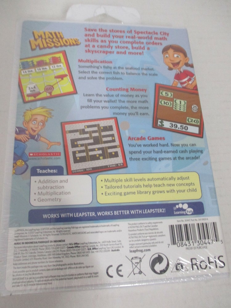 LEAPSTER Learning Game LEAP FROG Cartridge MATH MISSIONS 1st-3rd 6-9 years Condition: open box
