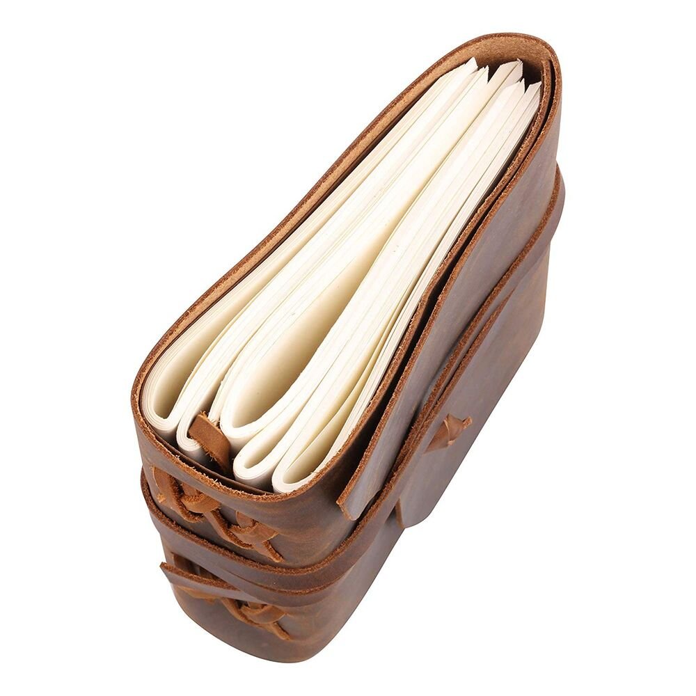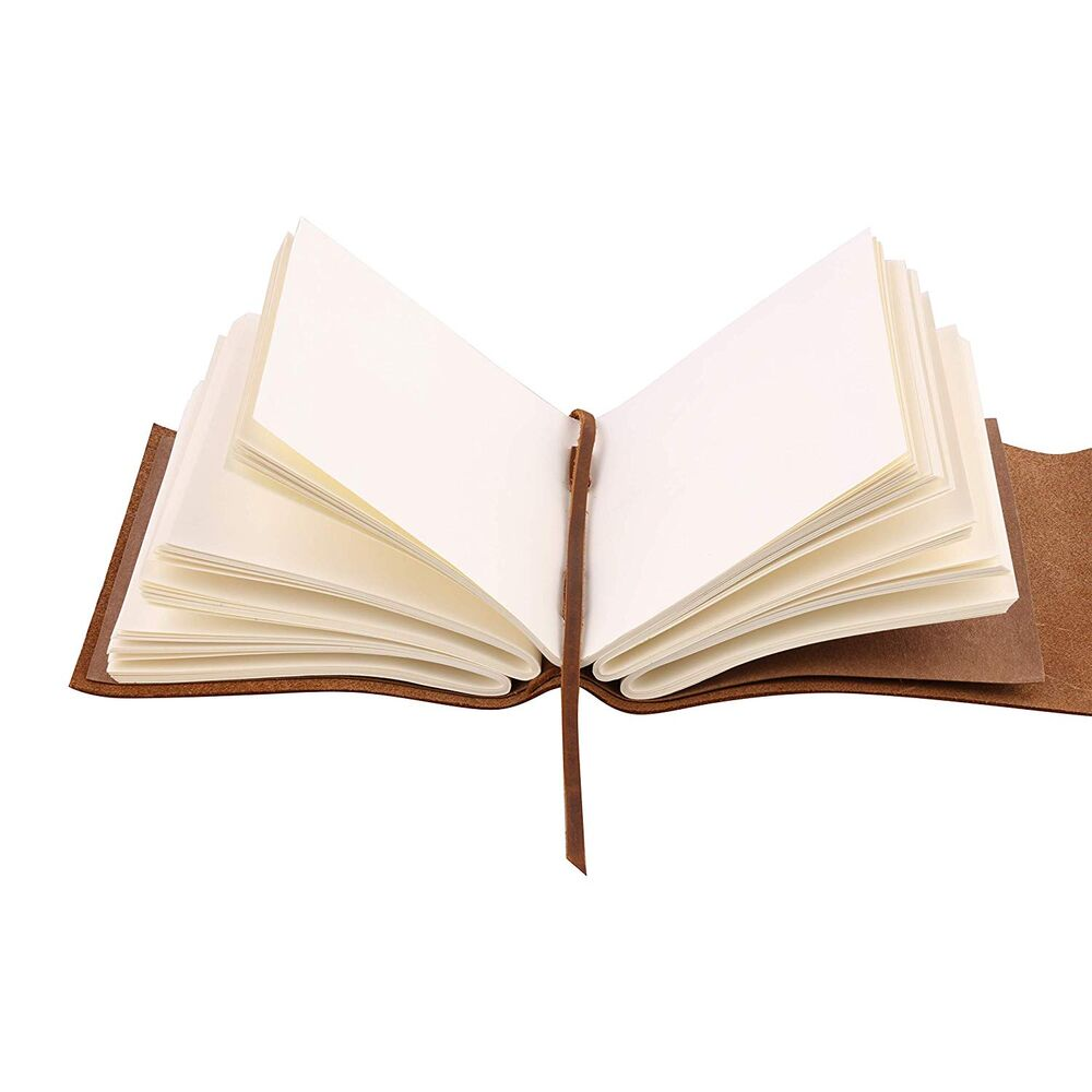 Dimensions: Length 5.5", Width 2", Height 7.5" 150 pages (300 with front and back sides) Paper is an off-white/cream color and is unlined Color: Brown/Tan Lightweight This product is for a Handmade Genuine Leather Journal-Diary. Leather Journal/Diary allows you to notate your memories and remember them tomorrow. Get back to the basics! It?s easy to forget and/or lose sincerity when you record your memories digitally. Having something handwritten makes your memories more tangible and gives more meaning given the fact that you took the time to write specific events down. This leather journal gives you a hard copy of your thoughts, adventures, notes, and photos. The possibilities to use this are endless but here are a few we?ve seen- Leather Artist Sketchbooks, Photo Album, Traveling Notes, Executive Notebook, Business Journaling, Hunting Logbook, Poetry Journal, Journalists, Dream Journal, Personal Journal, Food Planner, Commonplace Book, Instagram Scrapbook, Bible Journaling, scripture Study Journal, Diary Journals, Photo Journal, and the list goes on and on! Leather Journal is small enough to fit easily into your hands. Convenient to transport and won?t fill up your travel/work/school bag, but it?s big enough to keep all of the memories and important notes inside! For extra security there is a leather wrap around strap. If you?d prefer to keep it simple the strap is removable, the choice is yours! Our Leather Journals are meant to last. Using Soft & Supple Dark Brown Genuine Water Buffalo Leather with a real leather scent (no Faux or PU leather used). Everything is handmade and stitched to hold the journal together, without glue. 100% Natural Leather tanned with special oil. If the leather gets scratched, you can rub the markings out that will fade over time. Being handmade no two leather journals are quite the same. This really is the best gift for any occasion!