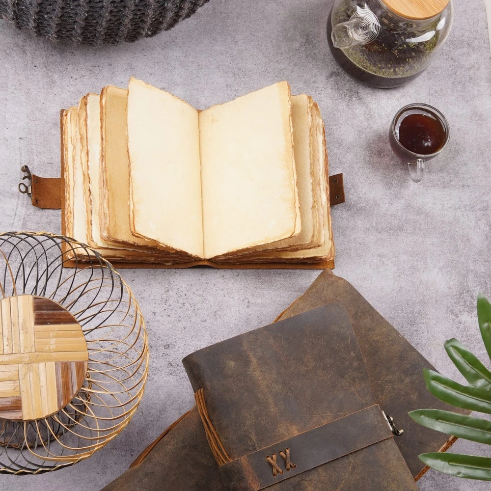 ✔ VINTAGE LEATHER JOURNAL: A Perfect Journal for Women and Men by Leather Kart. This Vintage Journal is Made from Genuine Buffalo Leather which is naturally tanned with oils and is chrome free. As these Daily Journals are made with genuine Cruelty free leather so each vary in look and shade producing a unique item. ✔ JOURNAL NOTEBOOKS WITH STURDY BINDING: Belt Wrap around closure with Antique Bras lock to keep the papers of the journal safe when not being used. A sturdy hand stitched binding to make sure that no paper comes out loose. ✔ PAPER: This leather journal comes with handmade deckle edges paper which is made from recycled cotton waste these old Paper are No Bleed Scrapbook Paper. ✔ PERFECT GIFT: This vintage-inspired journal serves as an exquisite and timeless gift suitable for a diverse range of recipients, including women, men, teen girls, boys, and cherished grandparents. A lovely treat for your loved ones for an anniversary, birthday or graduation present, or for someone starting a new adventure. ✔LEATHER KART PROMISE: - Leather Kart Leather Bound Journal comes with the Trust and promise of Purity of craftsmanship with each Writing Journal. ✔SIZE : 7 X 5 Inches Perfect size.