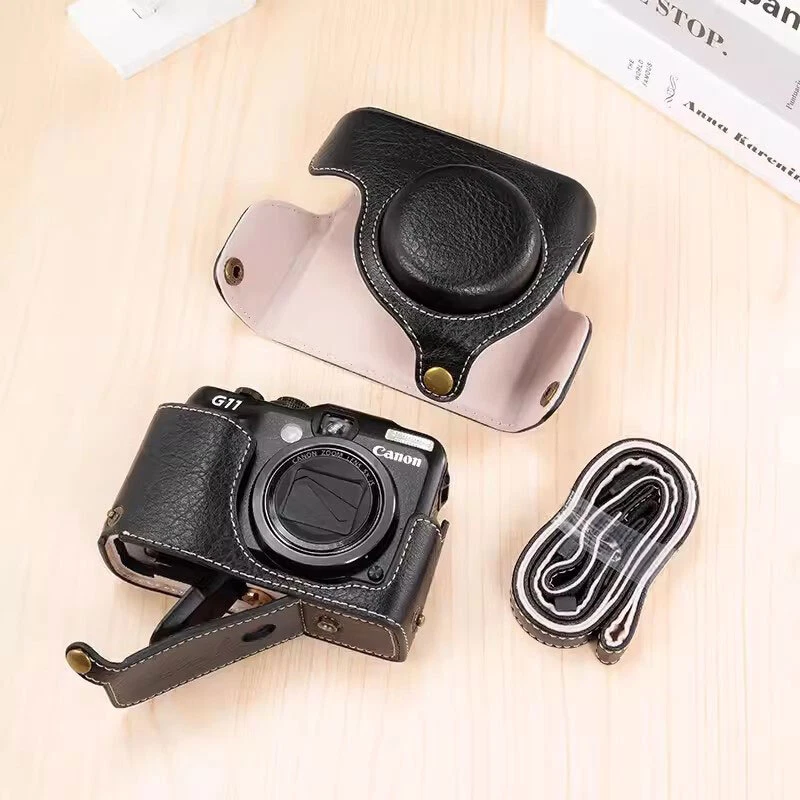 Leather Camera Case Bag for Canon G10 G11 G12 with Beautiful Grain πŸ‘