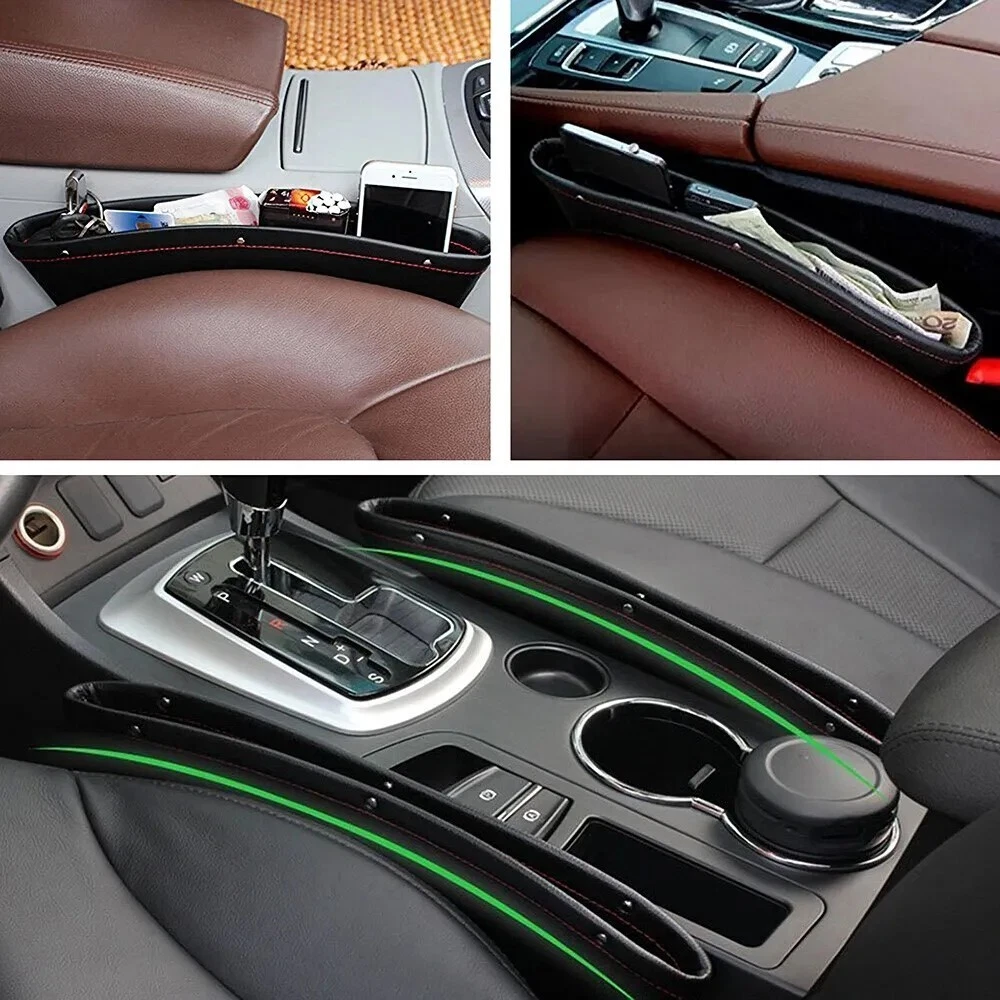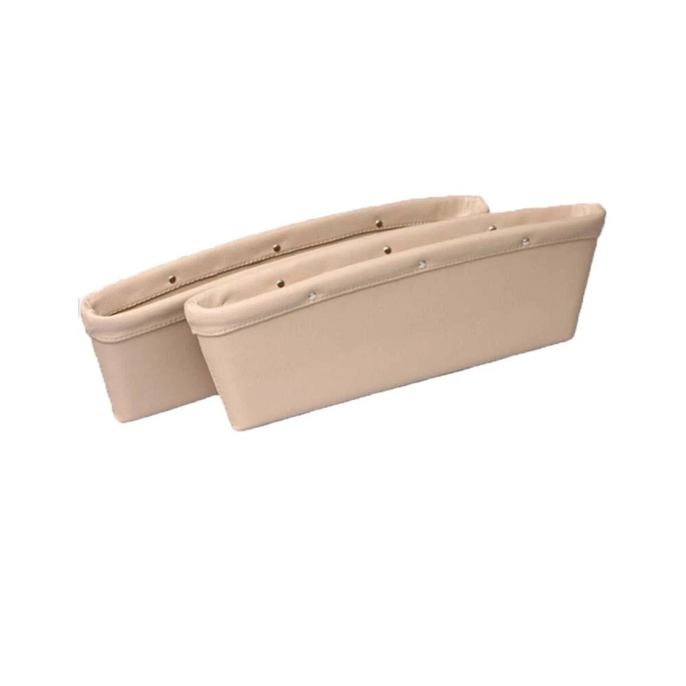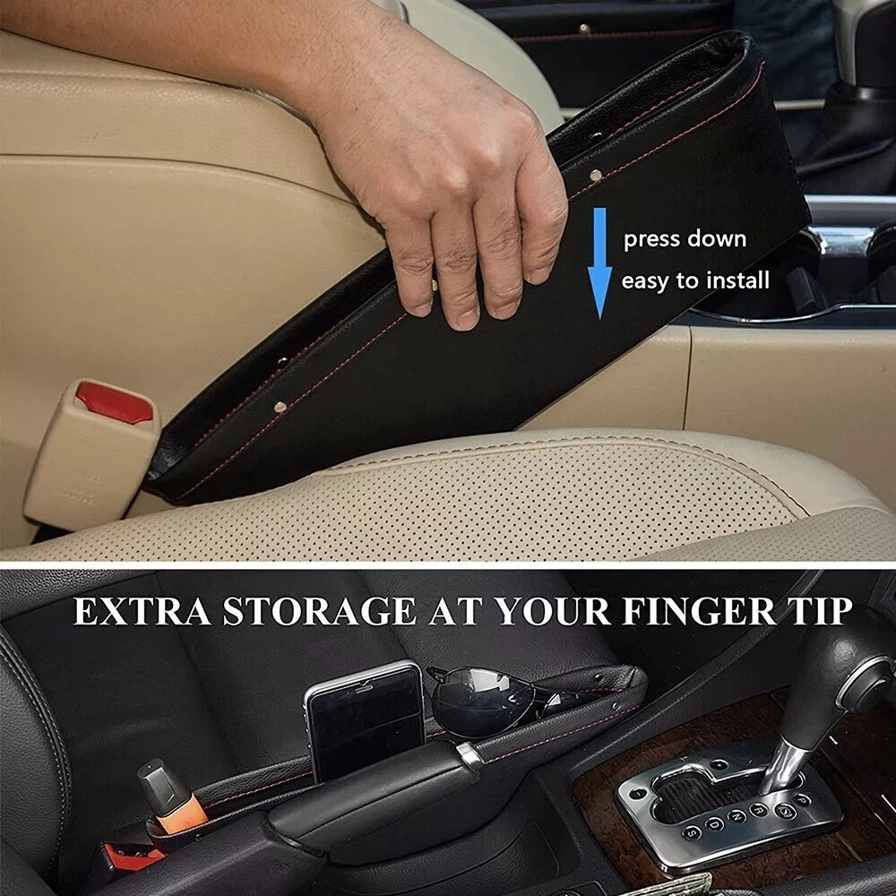 Car Seat Gap Filler Premium PU Full Leather Seat Console Organizer Car Pocket Organizer A MUST HAVE This Car Seat Gap Filler Is Great to Keep Your Pocket Necessaries Organized for an Enjoyable Ride. This Will Save You Countless Times from Digging Between the Seat and Center Console to Find Your Dropped Cell Phone, Credit Cards, Money, Keys, Coins, Etc. Easy And Convenient to Use. Our Car Seat Catcher Is a Practical Storage Pocket Within Easy Reach to Prevent Items Falling Down from The Seat Gap, It Fits Car Gap Space Between 0.50 To 1.6 Inch. Please Measure Your Car Seat Seam Distance Before Ordering. The Best Distance (0.9-1.6 inch) If Less Than May Only Play a Role in Preventing Items Falling. Our Car Seat Catch Caddy Is Measuring 11.8” x 4.3” x 1.5” inches, This Will Fit Most Vehicles, Please Check Gap Dimension to Make Sure There Is Still Space for Things to Fit In. It’s Made to A Very High Standard, Which Gives This Car Organizer a Good Look and A Super Long Life. Our Car Seat Gap Filler Is Made of High-Quality PU Leather That Has a Good Grip to Stay in Place When Moving the Seat, And Unlike All Other Brands We Include Velcro Strips with Sticker to Fasten to the Seat and That Will Make It Super Durable and Never Slip Down Between the Seats. Easy To Install. Features: l Car seat storage box for convenient finding, gap filling and leak proof. l No more dropping of small items and digging it in between the car side seat pocket and console. l Storing things like French fries, coins, cellphones, wallets etc and keep it within easy reach. l Designed to fill the gap between car seat and console. l Easy installation and convenient cleaning. l Fits the gap between seat console and console of most cars. Specification: Material: PU Leather Color: Beige Package Included: 1 Pcs Car Seat Organizer Box Note: One size fit most: The gap size between 0.7 - 1.3 inches. The catch caddy dimension is 11.8 x 4.33 x 1.5 inches. Please check gap dimension to make sure there is still space for things to fit in. Please check the size of your seat gap before order.