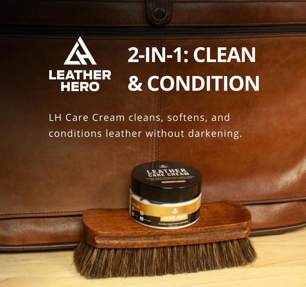 ALL-IN-ONE LEATHER CARE: leather care cream cleans, softens, conditions, and restores all leather types, providing complete care and protection. It will not darken your leather goods. SAFE SKIN-FRIENDLY FORMULA: Our revolutionary formula is made with 100% skincare products, making it the best leather couch cleaner and conditioner on the market. Revive worn-out leather by restoring its natural softness, shine, and color while protecting it from further damage. FAST CLEANING & CONDITIONING: Our leather sofa cleaner and conditioner is a 2-in-1 solution, allowing you to revive saddles, tack, jackets, purses, handbags, car seats, & more without leaving any greasy residue. NON-GREASY & FAST ABSORBING: This leather conditioner balm is quick-drying and non-greasy, leaving your leather surfaces soft and smooth without sticky residue. Its nice and light, and safe on your skin. RESTORE AND PROTECT: with save the day by not only cleaning, but fill your leather with life by blending away scratches and scuffs, conditioning dry leather, and protecting your leather from future damage and wear.