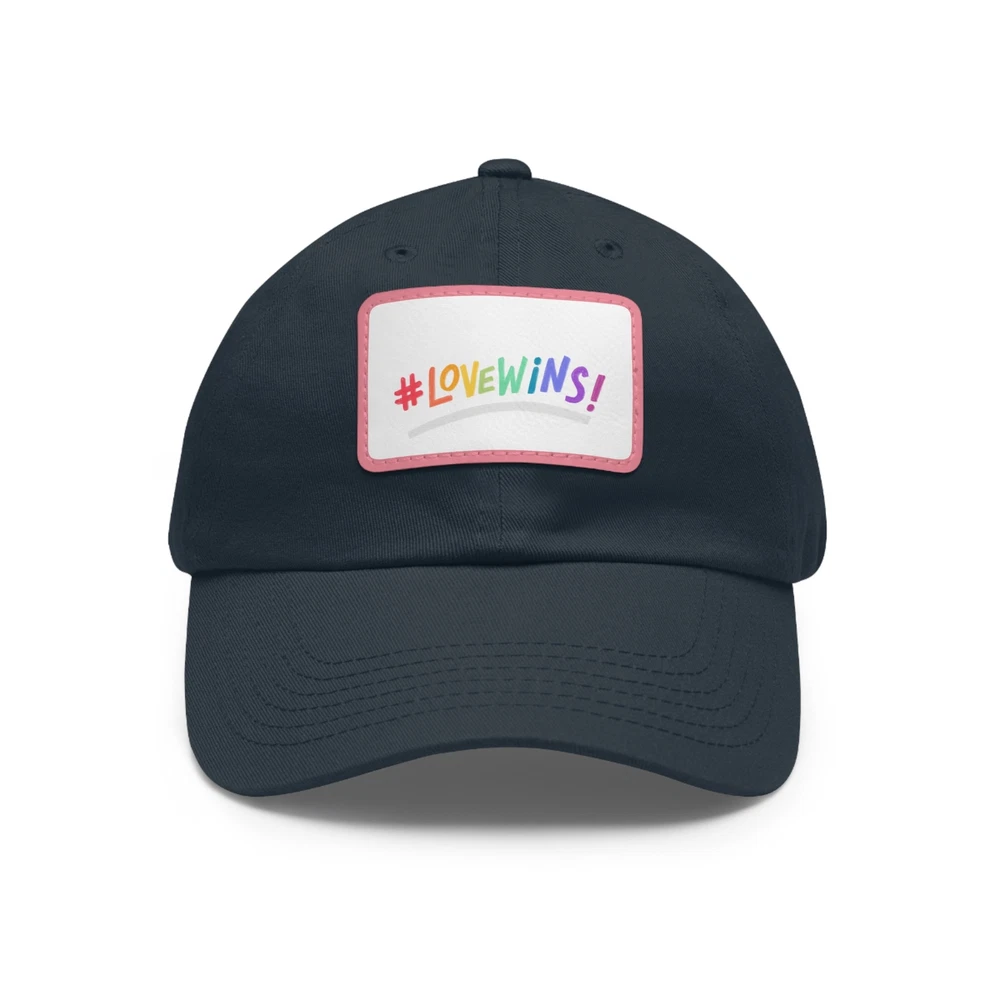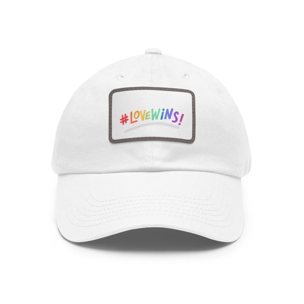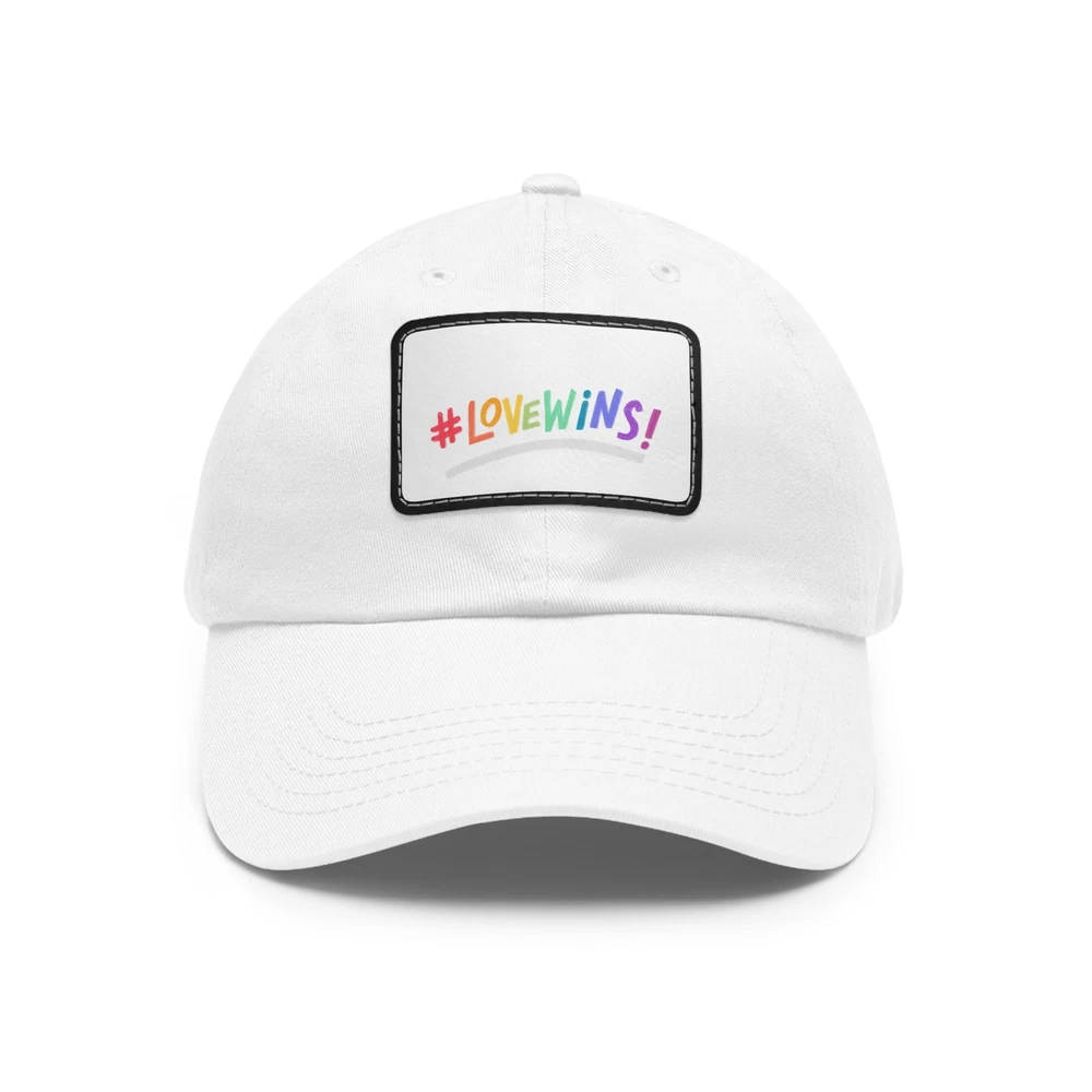 A stylish and modern hat featuring a leather patch with decorative stitching. Perfect for those who want to show pride and love, especially relevant for Valentine's Day. This hat is great for men and women who believe love wins. Product features - Decorative stitching for handmade look - Classy vintage look with buckle closure - Durable chino twill fabric - 100% bio-washed chino twill and faux leather materials - Unstructured and low-profile design Care instructions - Hand wash only.