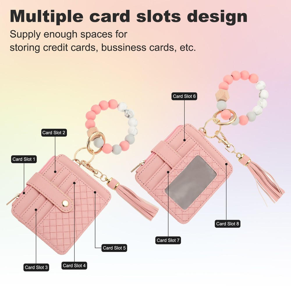Document The multifunctional wristlet wallet is stylish and convenient, with a bracelet, tassel and zipper pocket that provide ample space for cards and coins.SpecificationMaterial: PU Leather, Alloy;Color: Pink;Wallet Size: 11.5 x 9cm/ 4.53 x 3.54inch (LxW);Bracelet size: 9 x 9cm/ 3.54 x 3.54inch (LxW);Tassel Length: 8.8cm/ 3.46inch;Packing List: 1 set keychain wristlet wallet.AdvantageMade of PU leather material, scratch-resistant, with strong stitching for durability. Its RFID blocking material prevents card information stored on the chip from being scanned when traveling and shopping.A zipper compartment and multiple card slots supply more storage places, and the highly transparent PVC window film allows you to quickly and easily check the card information.InstructionThe slim and lightweight card holder wallet with a keychain and wristlet, can be easily hung on your hand or put in your pocket, coat, or small bag. It can also be hung on your bag or other items for easy carrying.NoteThe keychain wristlet wallet is suitable for most daily cards. If you want to place cards cut freely, you need to match the cardholder size. Keychain Wristlet Wallet, Leather RFID Blocking Credit Card Holder, Pink The multifunctional wristlet wallet is stylish and convenient, with a bracelet, tassel and zipper pocket that provide ample space for cards and coins. Specification Material: PU Leather, Alloy; Color: Pink; Wallet Size: 11.5 x 9cm/ 4.53 x 3.54inch (LxW); Bracelet size: 9 x 9cm/ 3.54 x 3.54inch (LxW); Tassel Length: 8.8cm/ 3.46inch; Packing List: 1 set keychain wristlet wallet. Advantage Made of PU leather material, scratch-resistant, with strong stitching for durability. Its RFID blocking material prevents card information stored on the chip from being scanned when traveling and shopping.A zipper compartment and multiple card slots supply more storage places, and the highly transparent PVC window film allows you to quickly and easily check the card information. Instruction The slim and lightweight card holder wallet with a keychain and wristlet, can be easily hung on your hand or put in your pocket, coat, or small bag. It can also be hung on your bag or other items for easy carrying. Note The keychain wristlet wallet is suitable for most daily cards. If you want to place cards cut freely, you need to match the cardholder size. Hot Item Payment 1.We accept eBay payment . 2.Payment must be received within 7 business days of auction closing. Shipping 1.We ship to your eBay or Paypal address. Please make sure your eBay and Paypal address is correct before you pay. 2.Items will be shipped within 1-3 business day when we received payment. 3.Delivery time depends on destination and other factors. Description Policy Keychain Wristlet Wallet, Leather RFID Blocking Credit Card Holder, Pink The multifunctional wristlet wallet is stylish and convenient, with a bracelet, tassel and zipper pocket that provide ample space for cards and coins. Specification Material: PU Leather, Alloy; Color: Pink; Wallet Size: 11.5 x 9cm/ 4.53 x 3.54inch (LxW); Bracelet size: 9 x 9cm/ 3.54 x 3.54inch (LxW); Tassel Length: 8.8cm/ 3.46inch; Packing List: 1 set keychain wristlet wallet. Advantage Made of PU leather material, scratch-resistant, with strong stitching for durability. Its RFID blocking material prevents card information stored on the chip from being scanned when traveling and shopping.A zipper compartment and multiple card slots supply more storage places, and the highly transparent PVC window film allows you to quickly and easily check the card information. Instruction The slim and lightweight card holder wallet with a keychain and wristlet, can be easily hung on your hand or put in your pocket, coat, or small bag. It can also be hung on your bag or other items for easy carrying. Note The keychain wristlet wallet is suitable for most daily cards. If you want to place cards cut freely, you need to match the cardholder size. Hot Item Payment 1.We accept eBay payment . 2.Payment must be received within 7 business days of auction closing. Shipping 1.We ship to your eBay or Paypal address. Please make sure your eBay and Paypal address is correct before you pay. 2.Items will be shipped within 1-3 business day when we received payment. 3.Delivery time depends on destination and other factors.