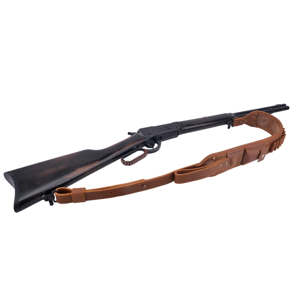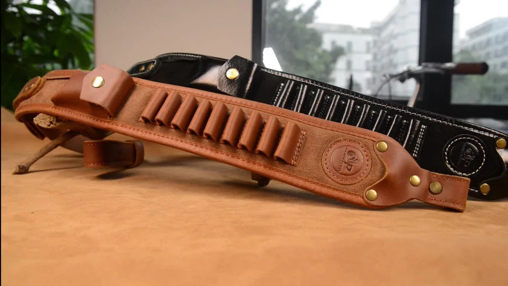 Made of high-quality first layer cow hide and suede leather makes you feel comfortable when carry. The Rifle Shoulder Strap has slots for 9pcs .308 .30-06 cartridges, come with a small leather bag which can hold the cloth for wiping the telescope, and Magnetic buttons for easy opening and closing. High-quality hardware and heavy-duty stitching are durable. Both ends of the shoulder strap are 1 inch wide, suitable for most rifle swivels. The Hunting Shotgun Belt is equipped with leather handle. It will be an excellent hunting accessory for your rifle. Check our store to find more products.
