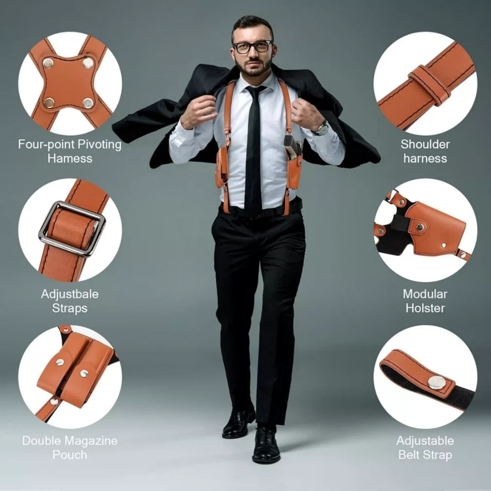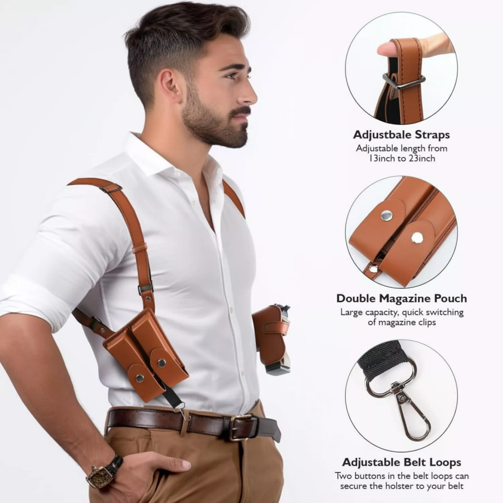480 Pocket Coins Storage Book High-capacity Collection Album Folder Money/Holder 15.19 USD 15.99 USD Free shipping 5% off 2pc Headlamp Flashlight 1200 Lumen LED Rechargeable Headlight White Red Light 13.84 USD 14.57 USD Free shipping 5% off Indestructible Dog Toys for Aggressive Chewers Extreme Tough Dog Toys (Beef) A+ 12.34 USD 12.99 USD Free shipping 5% off 10-PCS Thick Pyrex Glass Chillum Tobacco Pipe, Smoking pipe, Smooth One Hitter 11.27 USD Free shipping No Crumbs Kitty Kurlz Cat Toy Wear-Resistant Cat Scratching Board A+ 12.91 USD 13.59 USD Free shipping 5% off Short Fluffy Layered Stright Dark Roots Blonde Mix Synthetic Hair Wigs Women US 15.97 USD Free shipping Note: There will be some color difference between the real object and the picture, if you mind very much,please do not order , thank you! This material is Faux Leather, the texture is not as good as that of real leather, please do not order if you mind, thank you! The holster is designed for right-handed use Product Detail: Universal Fit Holster: Shoulder holster accommodates nearly every small subcompact, compact, mid-size and even full size pistols, including Glock17/17C/17L/19/20/20C/22/23, Sig Sauer P220/P226/P227/P320, Ruger P85, Beretta92FS, full sized1911's, and firearms of similar sizes. Comfortable Material: PU Leather Shoulder Holster is made of durable double-stitched leather, Lightweight, comfortable and wear resistant, thick enough to provide protection,comfort when worn for long periods. Adjustable Straps: With adjustable buckles on the shoulder strap, this gun shoulder holster can fit chest sizes up to 57". Two buckles in the belt loops can secure the holster to your belt more perfectly configured. Hidden Shoulder Holster: Great for concealed carry without adding to the waist line. Can wear this shoulder holster on a shirt or inside your jacket. You can walk, run and exercise normally, and never worry about your gun falling or walking away! Fits Most Adults: The shoulder holster is for Right-handed users. Allows you to flick up the retention strap with the back of thumb to draw the firearm quickly and effectively. Features: 1.Premium Leather Holster: Made of durable double-stitched PU leather, this gun holster is built to last through excessive wear and tear and protect your firearm from scratches.Lightweight and comfortable enough to wear all day long. 2. Adjustable Shoulder Strap:Very Size-flexible and Universal Fit. The leather shoulder holster fits chest sizes up to 57".The shoulder strap length is adjustable by using the screwdriver, you can adjust the buckle according to your body size.The screw fastened design makes the holster keep more secure than other's. 3.Adjustable Belt Tie-Down Straps:Leather double magazine pouch with retention flaps. Flap with snap keeps magazines securely in place. Two buckles in the belt loops can secure the holster to your belt more perfectly configured. The belt loop fits 2.36" (60mm) , 3.94" (100mm) belt widths, which can be adjusted according to your needs. 4.Perfect Concealment:The concealed carry holster provides an excellent range of motion at the arms and waist without any exposing risking situation. You can wear this shoulder holster on a shirt or inside your jacket Just simply remove the strap with your thumb that holds the firearm in place for the quickest draw. 5.FITS 1911 Full Size: The shoulder holster is for right-handed users. The holster has two buckle positions, and can be applied to more pistols and handguns. Compatible with Glock 17/17C/17L/19/20/20C/22/23, Sig Sauer P220, P226, P227,P320,Ruger P85,Beretta 92F, M9,M9A1, full sized 1911's and all similar sized handguns or pistols. Specifications: Type:Tactical Gun Holster Hand:Right Hand Material:PU Leather Color:Brown,Black Closure Type :Buckle Packing Included: 1Pcs Gun Shoulder Holster