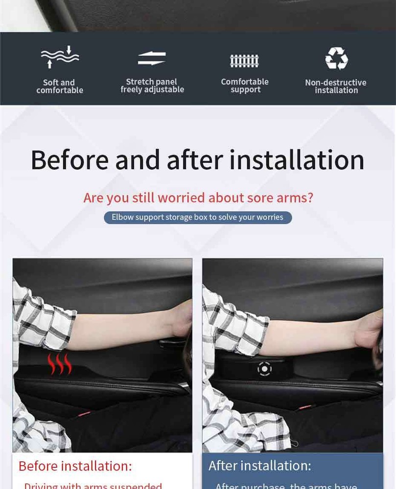 Product Description Storage Functional Armrests Car Door Leather Ergonomic Armrests Auto Interior Parts Arm Elbow Support Arm Heightening Pad Add our listing to Watchlist Or Add to Cart , you will get more discount Features: 1.100% Brand new and high quality. 2.Durable, Comf ortable, and Stylish. 3.Car armrest enables the left arm to be effectively supported in the driving process, reducing the driver's fatigue, drive comfortably. 4.Scientific and reasonable design, no trace, no damage to the car body, does not influence the normal driving. 7.Easy to ins tall. 8.Universal fit for different kinds of vehicles. Specification: Product Name: Car Armrest Left Elbow Support Material: Plastic Color: Black Size: As the pictures shows Package includes: 1 x Car Left Armrest Box Note: Please allow a 0.5-1 inch difference due to manual measurement.(1inch=2.54cm) Instruction not included. The color of the actual items may slightly different from the listing images due to different computer screen, thanks for your understanding. Payment Returns Contact Us Shipping We accept payment by PayPal only ! Payment should be completed within 5 days after buyer places the order,or else an unpaid case will be opened in order to cancel the transaction. If you can not pay in time, please contact us. e-check from PayPal will only be processed once the payment clears. All of the items will be shipped to buyer's EBAY address,please confirm your address on Ebay before you buy.Your order will be usually shipped out the same or next business days once the payment is made and cleared. 30-day Warranty with Exchange for defective, malfunctioned, incorrect or parts-missing items. Please notify us and return the item with all parts and accessories packed and marked "FOR EXCHANGE" within 14 days of receipt. If defective, malfunctioned or parts-missing items are no longer available, a refund may be issued. All returning postage costs will be the responsibility of the buyers under all circumstances. If you encounter any problems about anything, please feel free to contact us and we will do our best to assist you solve the issue. If you are not satisfied in anyway, please feel free to let us know and give us a second chance to correct it before you decide to leave any neutral or negative feedback. Please contact us through eBay link if you have any questions. We will reply you within 24- 48 hours. Please check you spam mail if no response for 48 hours. All items will be checked before packing. All items are new and of high quality. Item will be shipped within 1 business days upon receipt of payment, excluding weekends and public holidays. If to USA,we will ship your order by USPS,it will take about 8-12 working days to you,and you can track it on line. If to other country,we will ship your order by China Post or Singapore Registered Air Mail,it will take about 14-21 working days to you,you aslo can track it on line. Delivery time is about 14-28 business days and it may take up to 8 weeks . Payment We accept payment by PayPal only ! Payment should be completed within 7 days after buyer places the order,or else an unpaid case will be opened in order to cancel the transaction. If you can not pay in time, please contact us. eCHECK from PayPal will only be processed once the payment clears. All of the items will be shipped to buyer's EBAY address,please confirm your address on Ebay before you buy.Your order will be usually shipped out the same or next business days once the payment is made and cleared. Returns 30-day Warranty with Exchange for defective, malfunctioned, incorrect or parts-missing items. Please notify us and return the item with all parts and accessories packed and marked "FOR EXCHANGE" within 14 days of receipt. If defective, malfunctioned or parts-missing items are no longer available, a refund may be issued. All returning postage costs will be the responsibility of the buyers under all circumstances. Contact Us If you encounter any problems about anything, please feel free to contact us and we will do our best to assist you solve the issue. If you are not satisfied in anyway, please feel free to let us know and give us a second chance to correct it before you decide to leave any neutral or negative feedback. Please contact us through eBay link if you have any questions. We will reply you within 24- 48 hours. Please check you spam mail if no response for 48 hours. Shipping All items will be checked before packing. All items are new and of high quality. Item will be shipped within 1 business days upon receipt of payment, excluding weekends and public holidays. If to USA,we will ship your order by USPS,it will take about 7-10 working days to you,and you can track it on line. If to other country,we will ship your order by China Post or Singapore Registered Air Mail,it will take about 14-21 working days to you,you aslo can track it on line. Delivery time is about 14-28 business days and it may take up to 8 weeks . Welcome to our Store ~