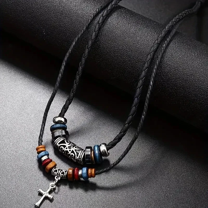 This leather tribal necklace is a must-have for anyone who wants to add a touch of vintage ethnic style to their outfit. The necklace is perfect for both women and men and can be worn with any outfit.