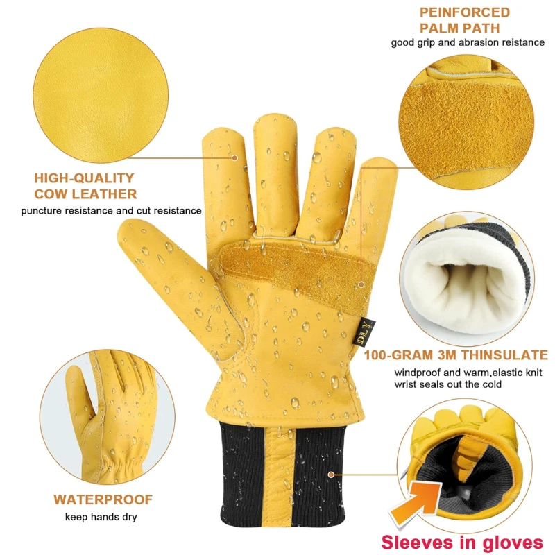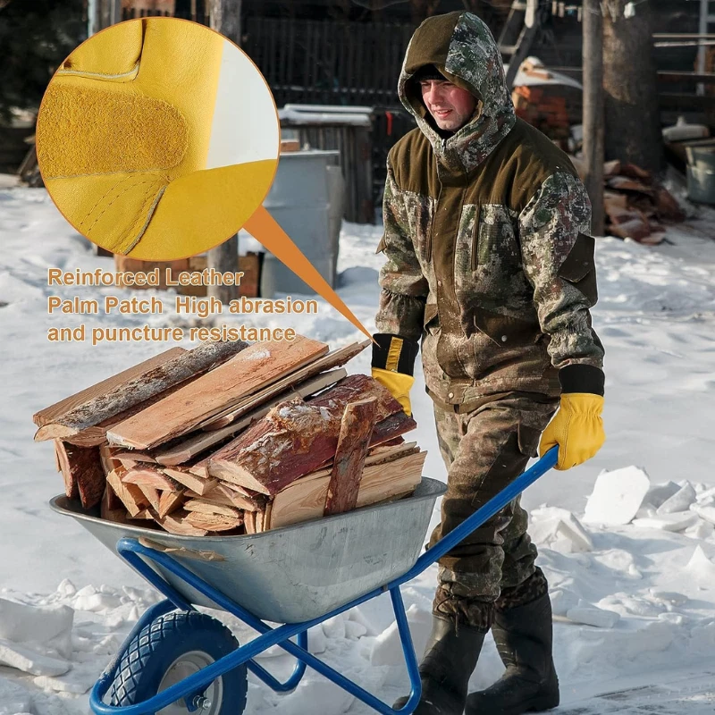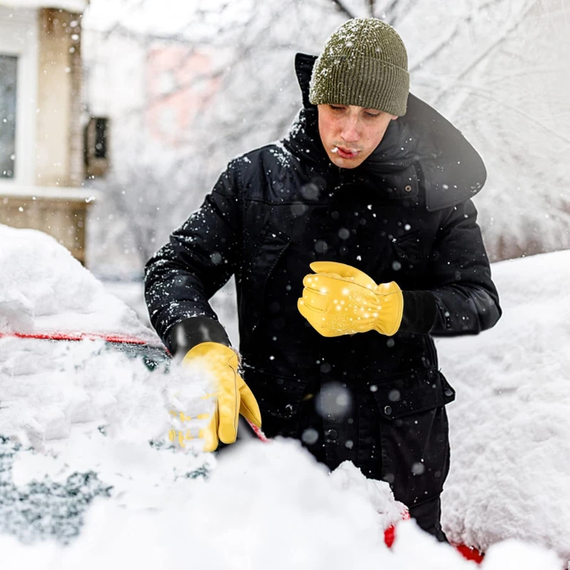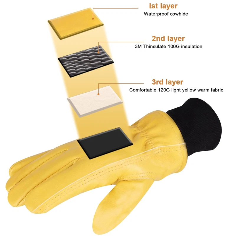 Material: Leather Size: X-Large Color: Yellow Special Feature: Thermal Insulated, Cold Resistant Windproof, Flexible, Abrasion Resistant, Water Resistant About this Item: Winter Work Gloves for Men: Warm, Durable, and Reliable Stay Warm All Day: These winter work gloves are lined with Thinsulate insulation, keeping your hands cozy and comfortable during cold-weather tasks. Water-Resistant & Tough: Made from high-quality cowhide, these gloves are wear-resistant, puncture-resistant, and feature a waterproof membrane to keep your hands dry and warm. (Note: Avoid soaking them in water for extended periods.) Snug Fit for Cold Weather: The elastic wrist cuff ensures a secure fit, keeps the gloves in place during demanding tasks, and provides extra warmth to your wrists. Built to Last: Reinforced leather palm patches add extra thickness for improved grip, slip resistance, and enhanced durability against wear and tear. Your Winter Work Essential: Perfect for any cold-weather job, these gloves are designed to keep you comfortable and protected no matter the task. Upgrade your winter gear with these rugged, insulated work gloves built for warmth, durability, and performance in tough conditions. Perfect for outdoor jobs, and more! Returnable until Jan 31, 2025 For the 2024 holiday season, eligible items purchased between November 1 and December 31, 2024 can be returned until January 31, 2025.