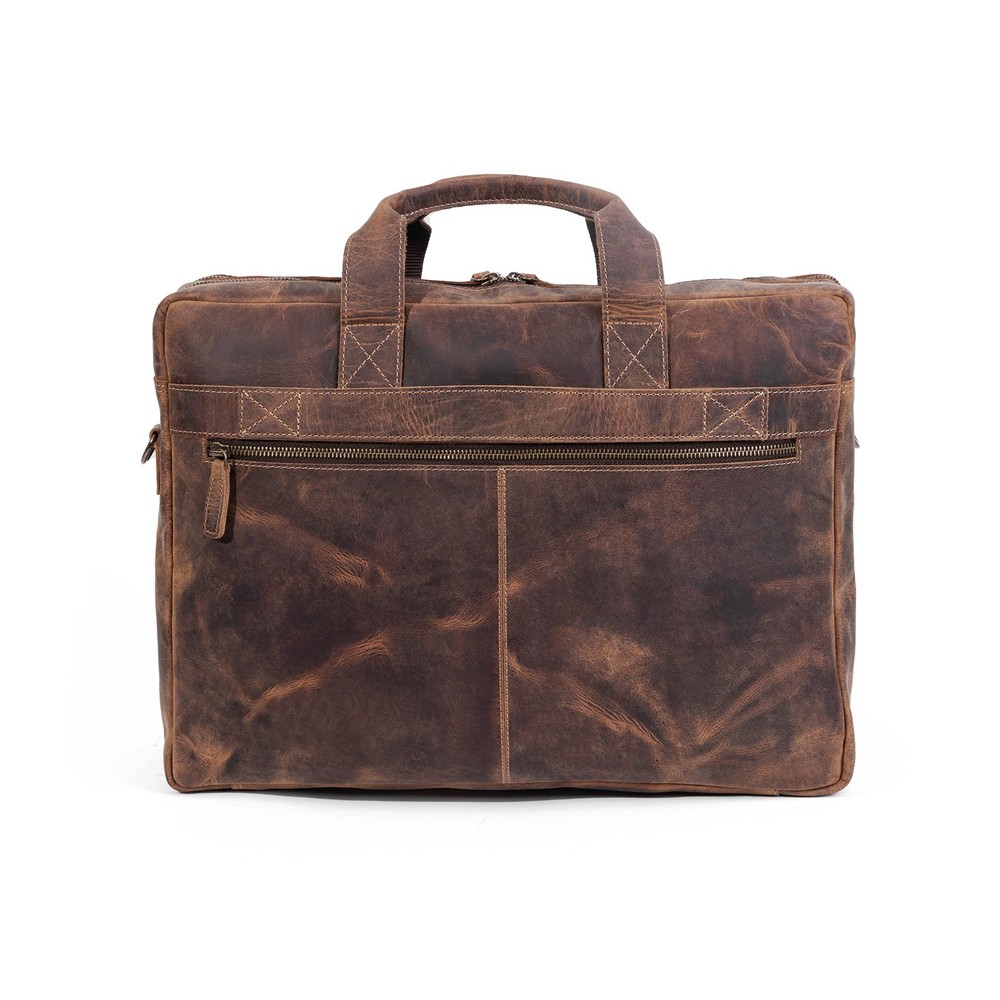 messenger briefcase for men laptop shoulder 16-inch leather laptop for men and leather office leather shoulder handmade leather messenger bag for men leather satchel shoulder bag for men 's laptop bag leather briefcase best handmade bag distressed best gifts for men computer bag leather Christmas valentine anniversary gifts for men and Premium Buffalo Leather & YKK Metal Zippers: Crafted from premium top-grain water buffalo leather by experienced craftsmen. All metal zippers used on this bag are from the renowned YKK brand, known for their durability and reliability. Trolley : Equipped with a convenient trolley strap at the back, allowing you to easily attach the bag to your suitcase for hassle-travel at airports. Sleek & Multipurpose Design: With dimensions of 16" (W) x 13" (H) x 5" (D), this bag can accommodate laptops up to 15.5 inches while maintaining a sleek, non-bulky look. It can be used as a briefcase, laptop messenger bag, or office satchel bag. Multiple Storage Sections: Features 2 large zippered compartments—with a padded section for laptops and valuables, and another for documents, journals, and files. Includes 2 side zip pockets for smaller items like wallets or diaries, as well as designated compartments for cards, pens, and mobile devices. Additionally, there’s a rear zip pocket and front pockets (with zip and button closures) for easy access to keys and frequently used items. Perfect Gift with : A great gift for any occasion—Christmas, Valentine’s Day, birthdays, or anniversaries. This bag comes with a -year , ensuring peace of mind..